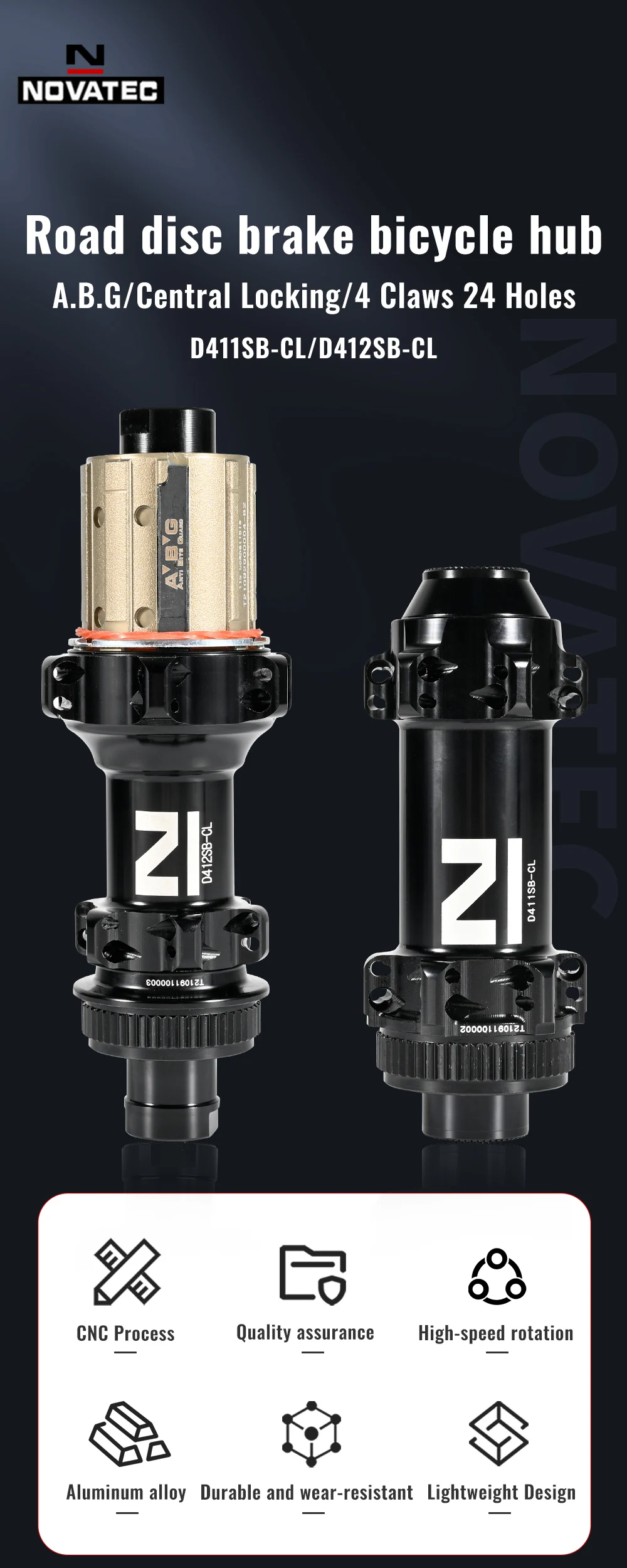 Center Lock NOVATEC D411SB-CL D412SB-CL Super Light Disc brake hubs for Road bicycle 24/24 holes Novatec 411/412 Thru Alex