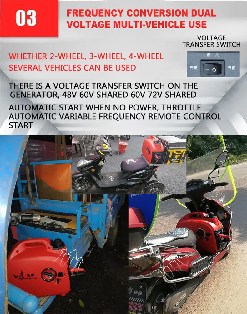 3kw Portable Electric Vehicle Range Extender 48v60v72vBattery Free Installation
