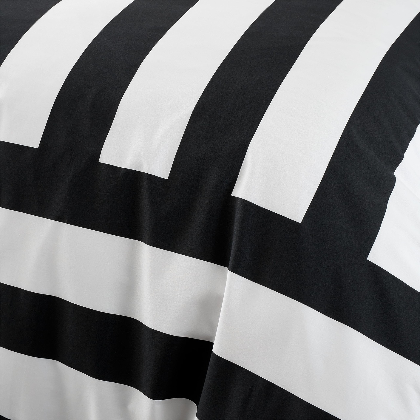 This luxury, designer and 100% cotton percale duvet cover set has bold black & white striped design on it which is the ideal piece to create a signature style in the modern home. Material: 100% Cotton Percale (180 Thread Count), it is machine washable. This set includes 1 x double duvet cover and 2 x pillowcases, duvet cover size is 200cm x 200cm (79" x 79") (Approx) and pillowcase size is 48cm x 74cm (19" x 29")(Approx).