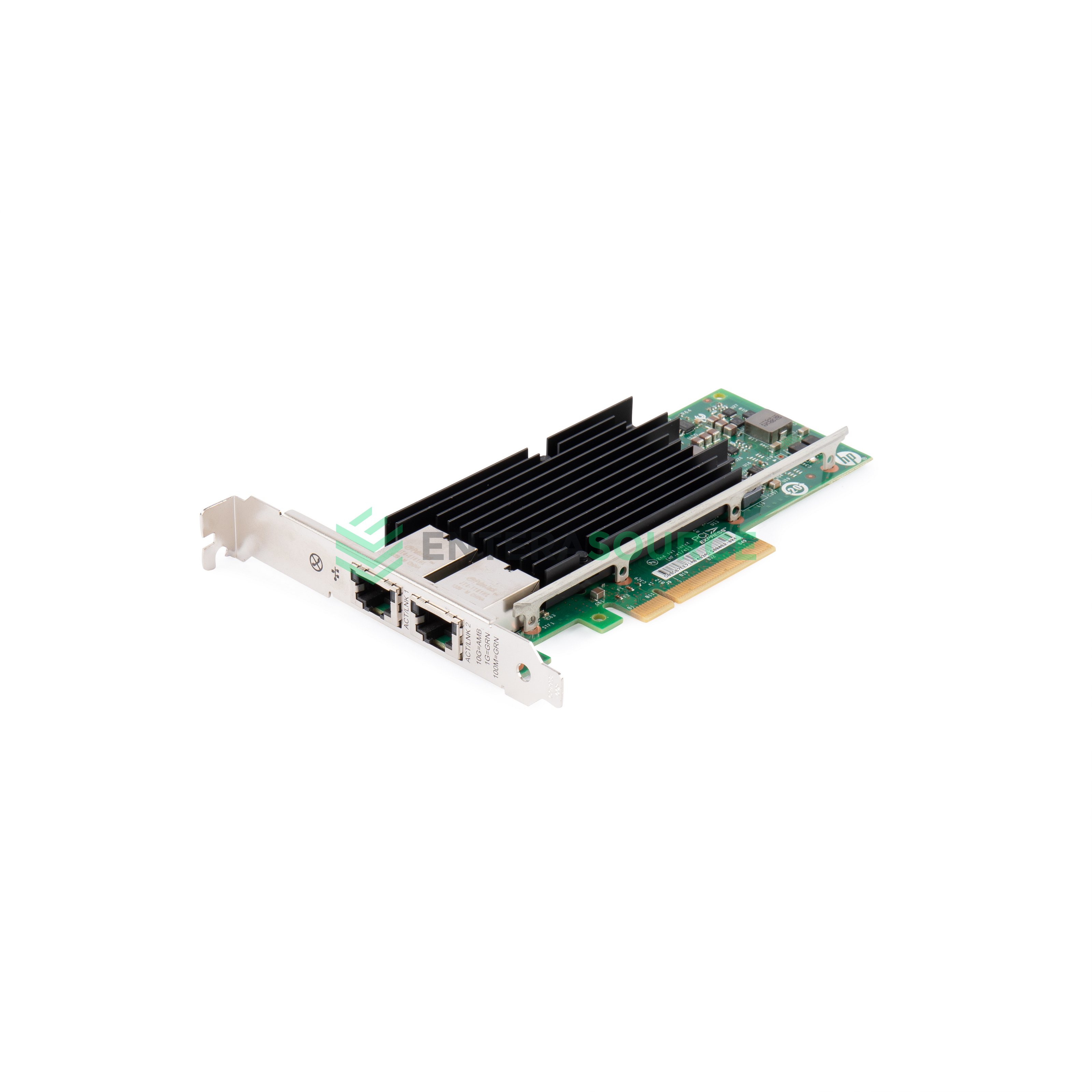 Boost your server's networking capabilities with the HP 717708-001 10Gb Dual Port 561T Ethernet Adapter. This refurbished, plug-in card device is designed to deliver high-speed data transfer rates of up to 10Gbps. With two ports, it offers increased bandwidth and improved performance. The adapter is compatible with HP DL360p, DL380, and DL560 Gen8 servers and operates on a PCI Express 2.1 x8 interface, ensuring seamless integration and reliable connectivity. Upgrade your IT infrastructure with this efficient and robust Ethernet adapter from Enterasource.