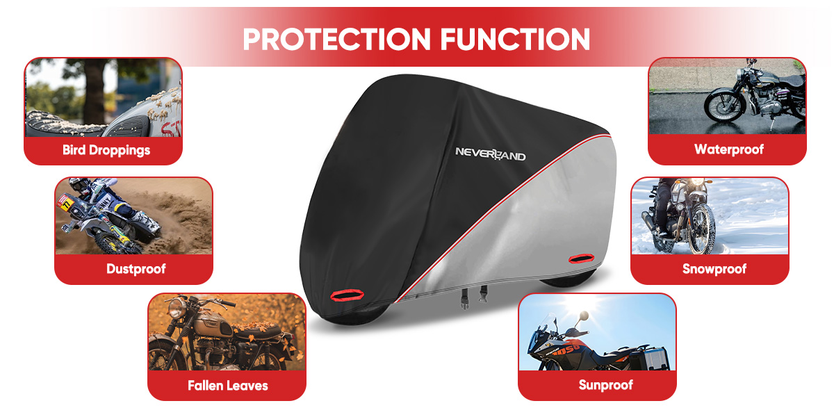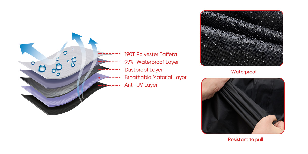 【Superior Quality】 - Our motorcycle cover is made of high-quality material with waterproof PU coating inside, which is tear-resistant, abrasion-resistant and UV-resistant.