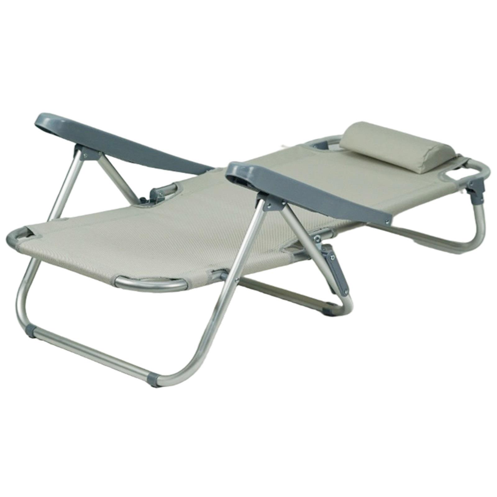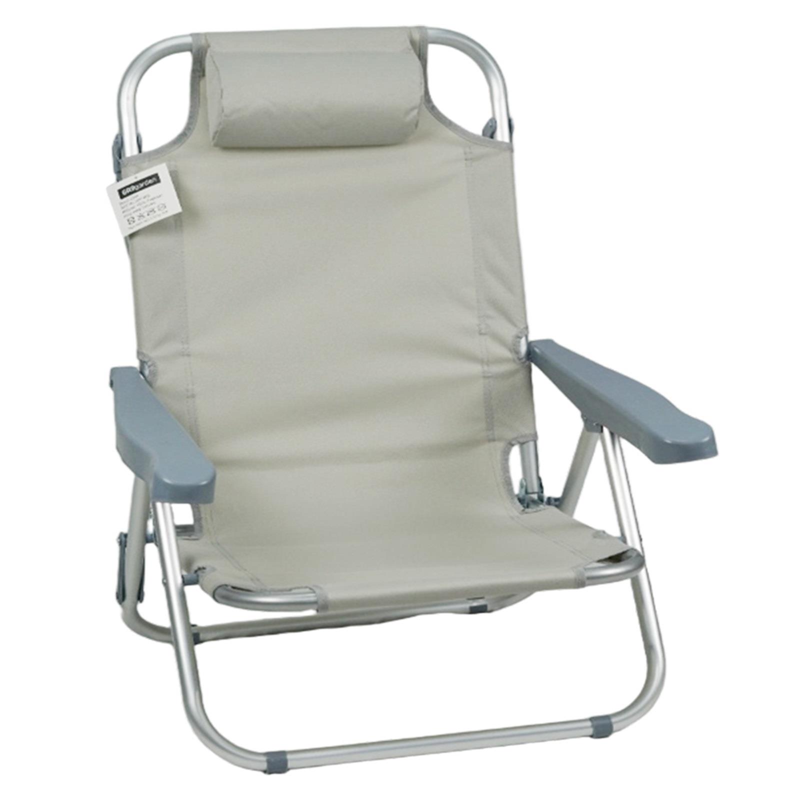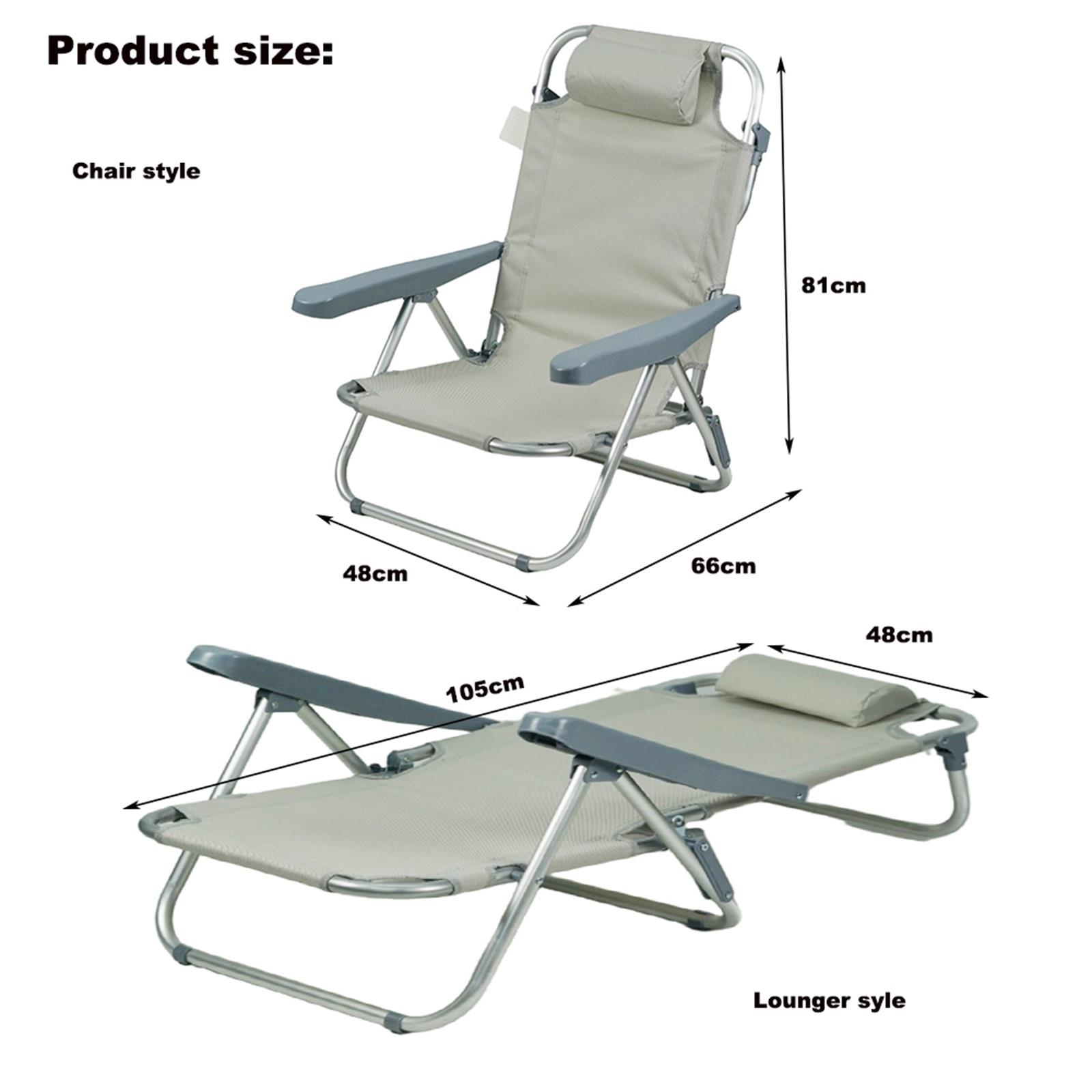 Gr8 Garden Grey Folding Beach Deck Chair Sun Bed Lounger 4 Adjustable Position Portable Outdoor Camping Hiking Picnic Foldable Recliner Seat