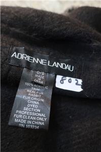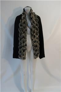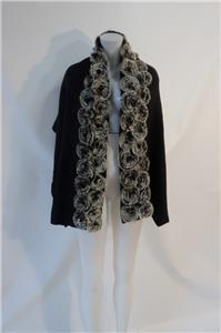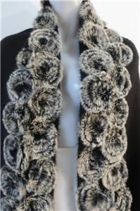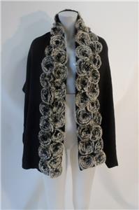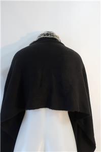 - Womens Adrienne Landau Black Genuine Rabbit Fur Trim Knit Wrap Shawl Scarf O/S