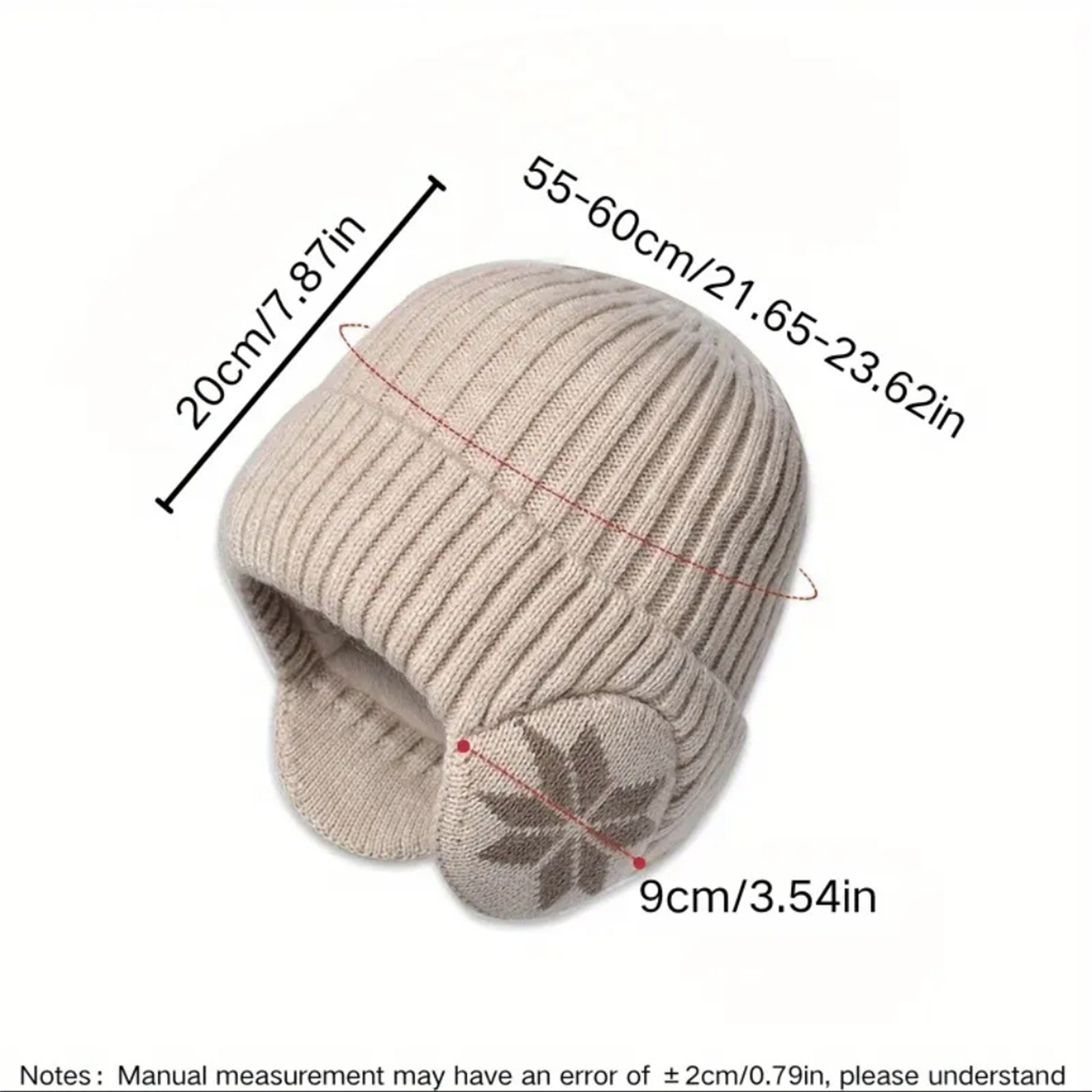 2. Head circumference: 55-60cm, cap depth: about 20cm, ear protection diameter: about 9cm, one size,