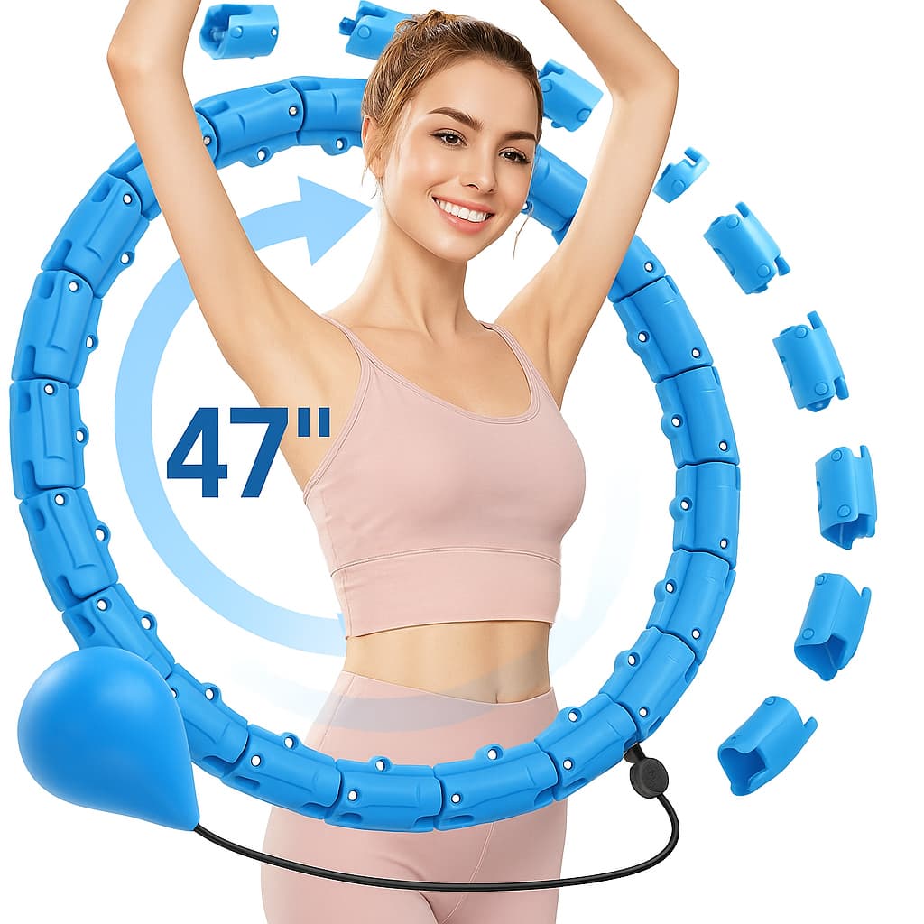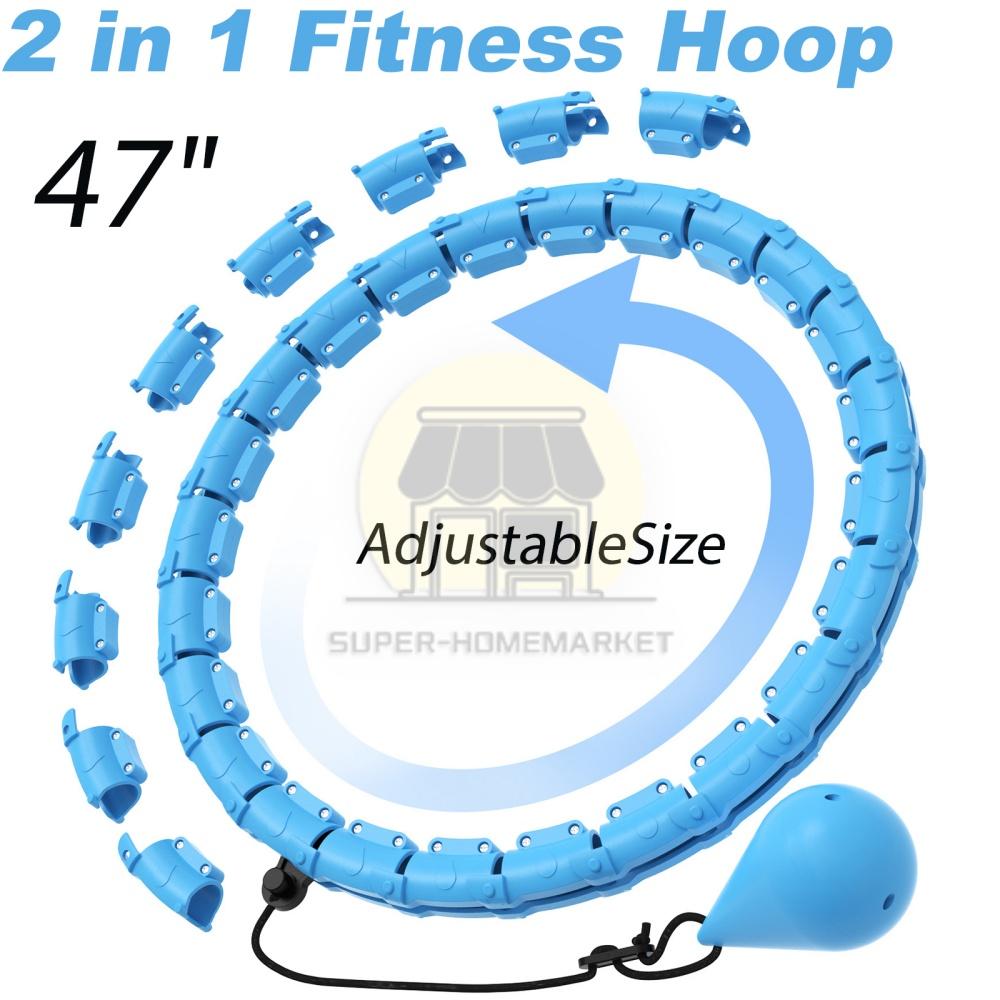- The fit hoop has 24 detachable links and is equipped with a 0.6 lb gravity ball. Appropriate waist size is 26 to 47 inch