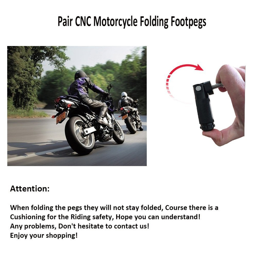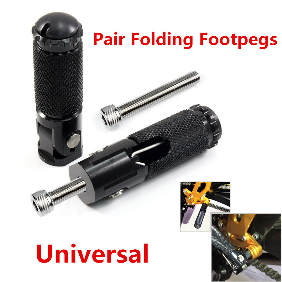 Universal Black 2Pcs CNC Aluminum Motorcycle ATV Folding Rear Set Foot Rest Peg