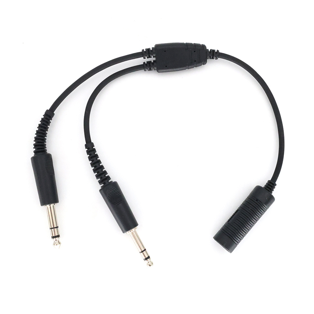 Helicopter Aviation Headphone Cable Adapter 7.1mm To GA Dual Plug 40cm Black