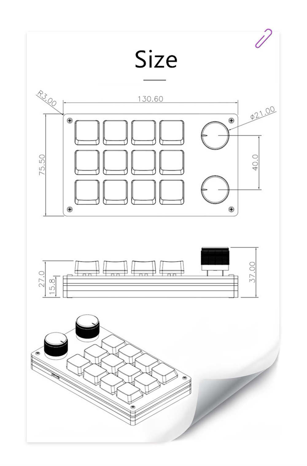 12 programmable keys,Knob design, which can volume plus or minus, pause, play and other functions.