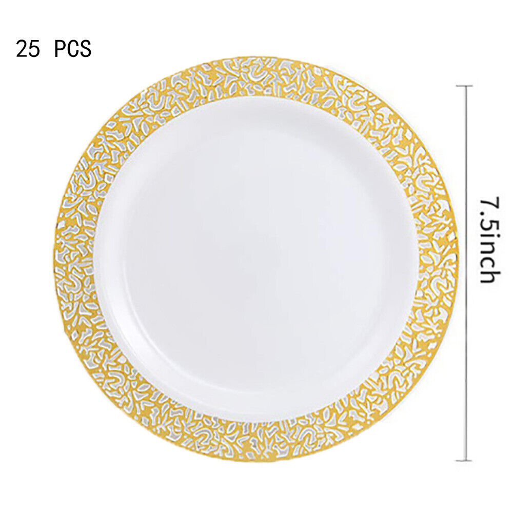 25PCS 7.5" Gold Lace Disposable Plastic Plates Wedding Birthday Party Christmas