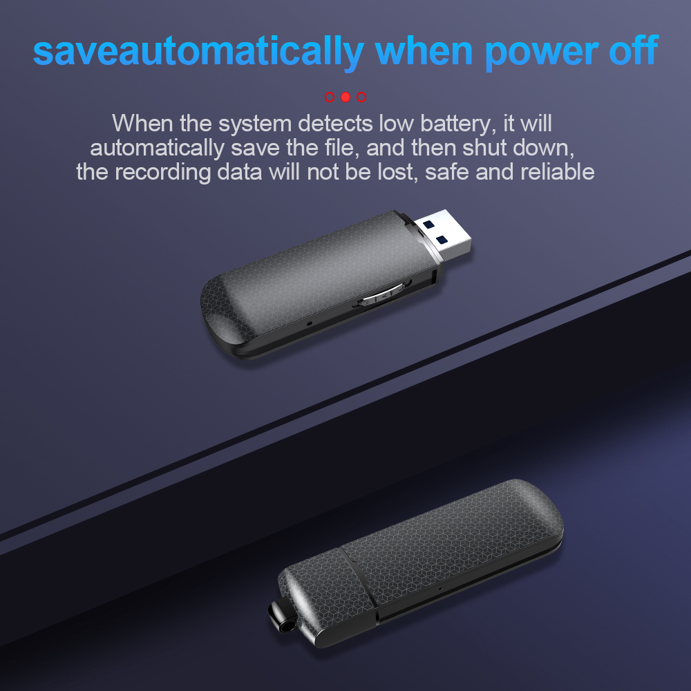 4.Smart Battery Detection: Never lose your recording anymore. The USB recorder voice recorder has built-in smart battery detection which makes it save the recording automatically before power is exhausted.