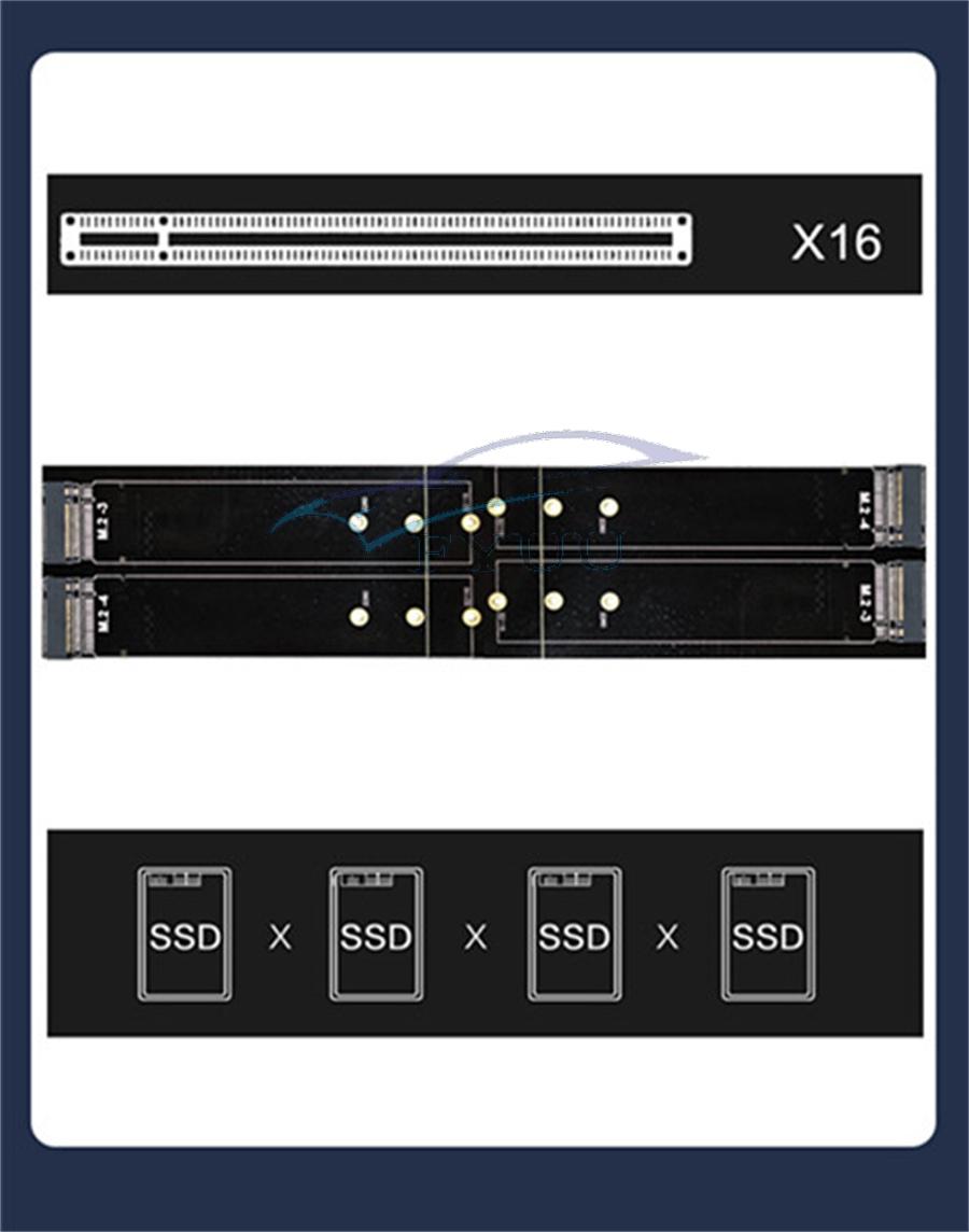 M.2 X16 PCIe 4.0 X4 Expansion Bifurcation Card Supports 4 NVMe M.2 M key 2260 2280  22100 22110