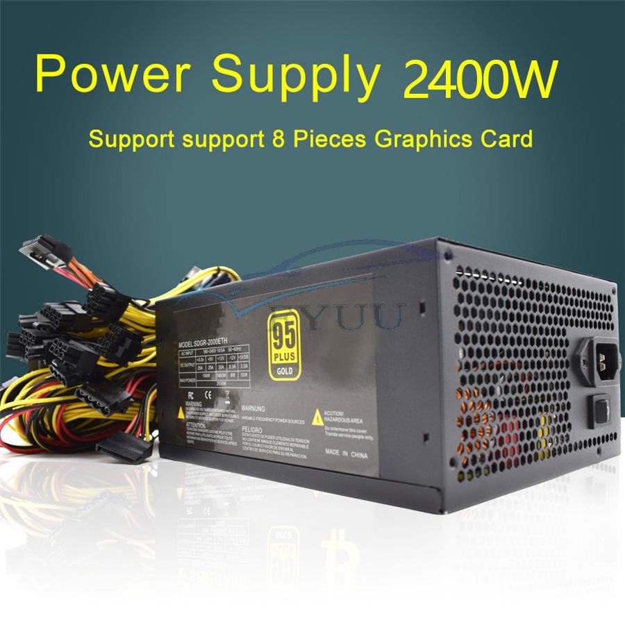 2400W ATX For ETH Miner Ethereum Mining Power Supply PC 8 Graphics Cards