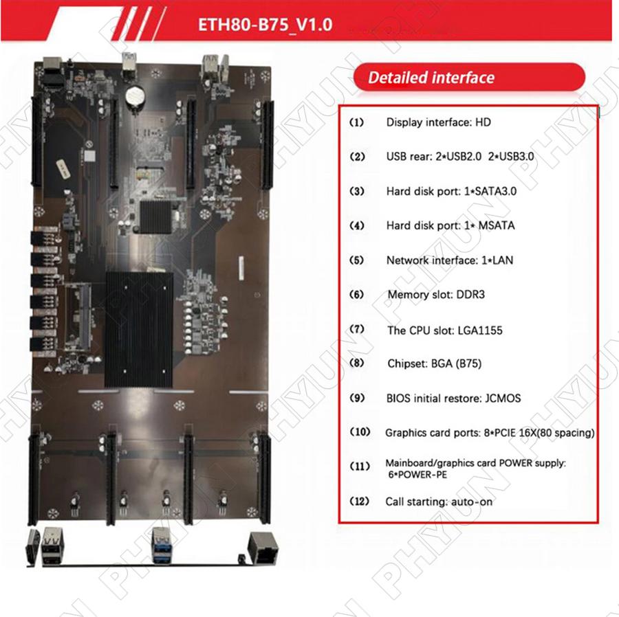 Design 8 graphics card interfaces, 80mm card slot spacing, can support large graphics card mining;