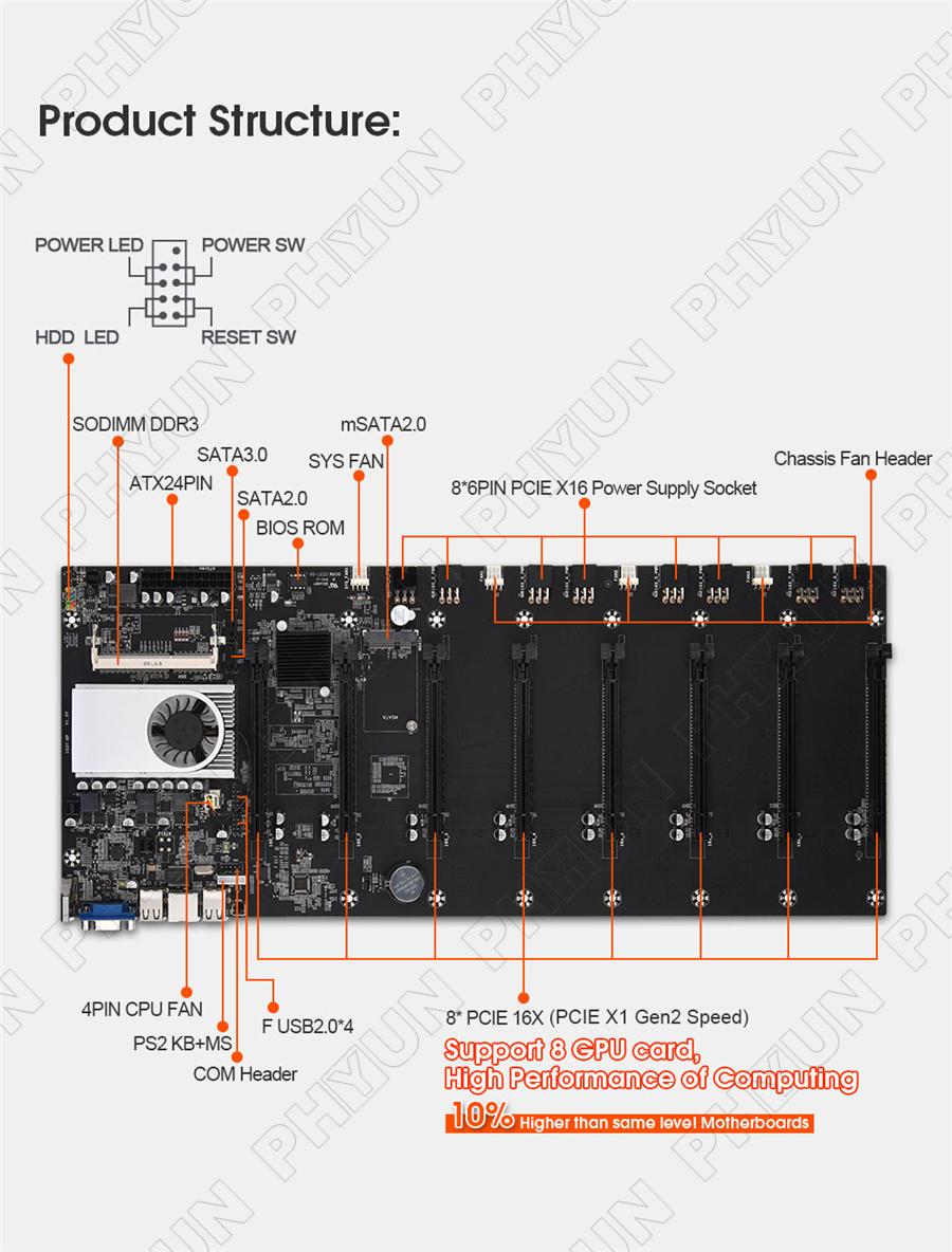 This product is a mining machine motherboard CPU set,low power consumption, less heat generation, energy saving and safe use