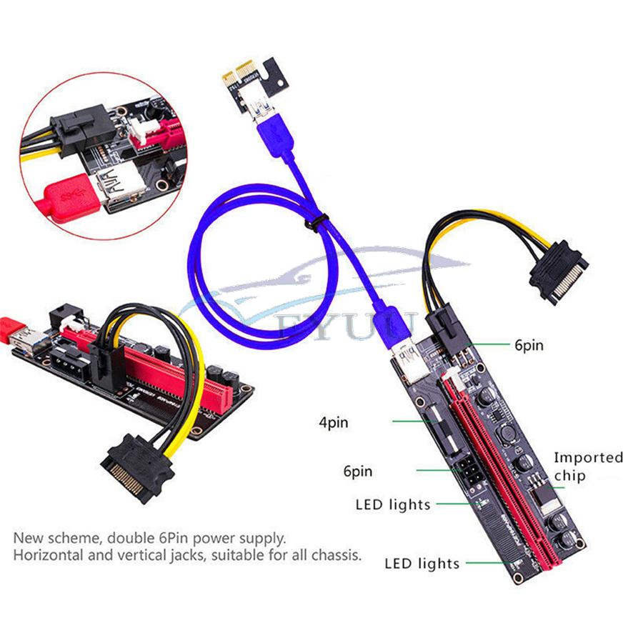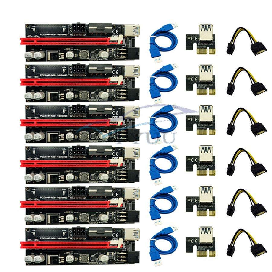 6Pcs Newest USB 3.0 Pci-E Riser Ver 009S Express 1X 4X 8X 16X Extender Set