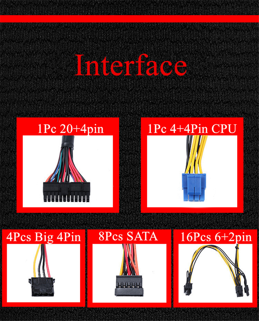 - Interfaces: 24PIN*1, 4+4PIN*1, SATA*8, big 4PIN*4, 6+2PIN*16