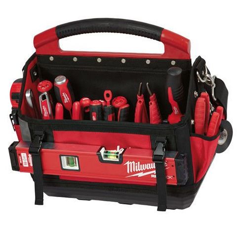 Part of the industries most versatile and most durable modular storage system, the Milwaukee Pack out 15 in. storage tote features an impact resistant molded base that fully integrates with all Pack out system components. Constructed with 1680D ballistic material and all metal hardware, the 15 in. storage tote is designed for ultimate durability while the included padded should strap and durable over molded handle allow for easy transport. The 15 in. tote features 31 total pockets designed to organize and carry power tools, hand tools and accessories.