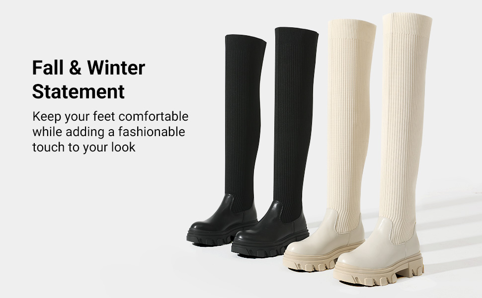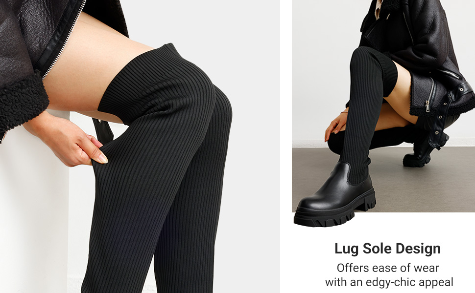 • Casual & Chic: These fashion-forward thigh-high boots with a kit upper and lug sole design are the perfect companion to add some fun to your dreary fall or winter wardrobe and will highlight your chilly weather outfits.