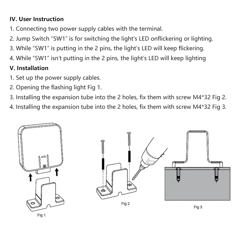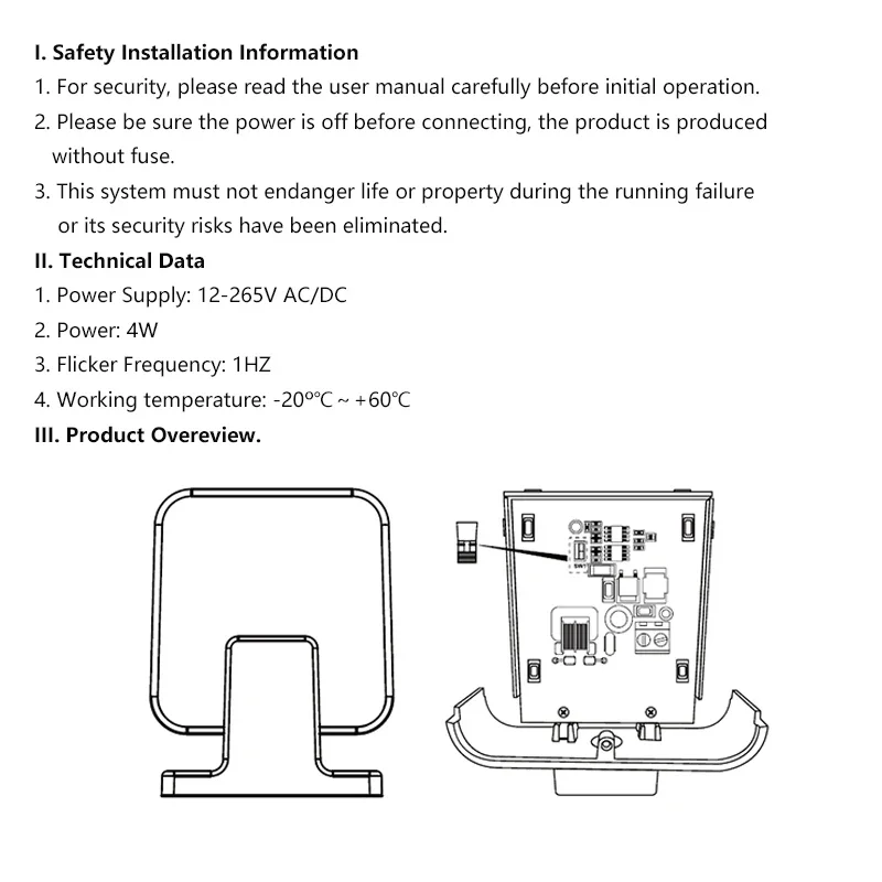 Flashing frequency: 1Hz