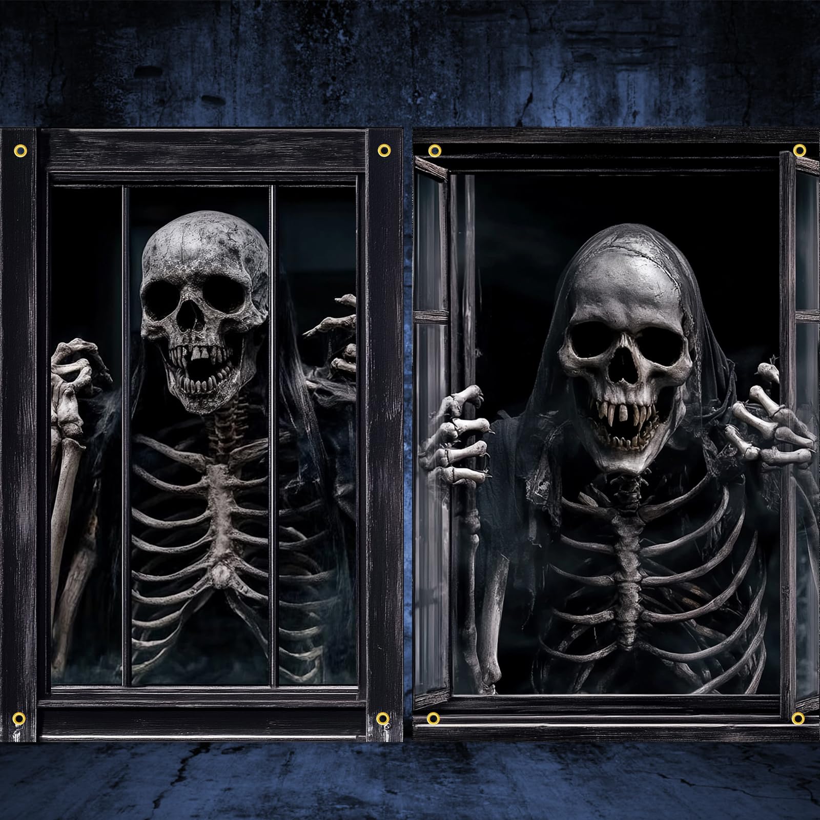 Skeleton Ghost Design: the Skeleton ghost window decoration adopts a realistic ghost design with creepy blood, which can create the eerie illusion of a ghost climbing out of a window and grabbing you, effortlessly creating a spooky vibe for your Halloween zombie party