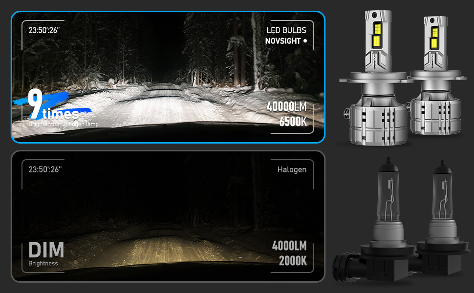 【Enhanced Safety with NOVSIGHT LED Bulbs】Eliminate road dark spots with instant-on, glare-free NOVSIGHT LED lights for superior visibility and safety, day or night.