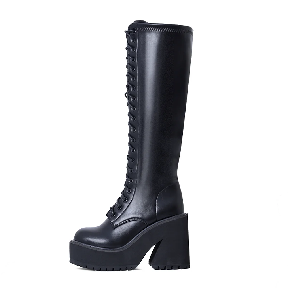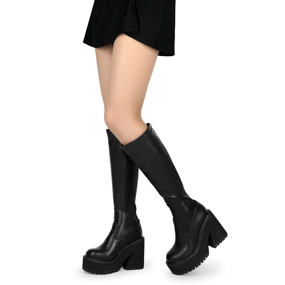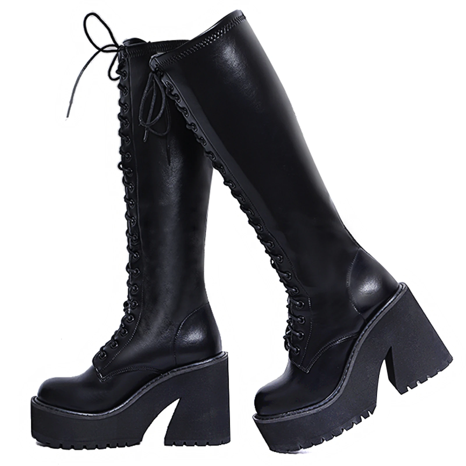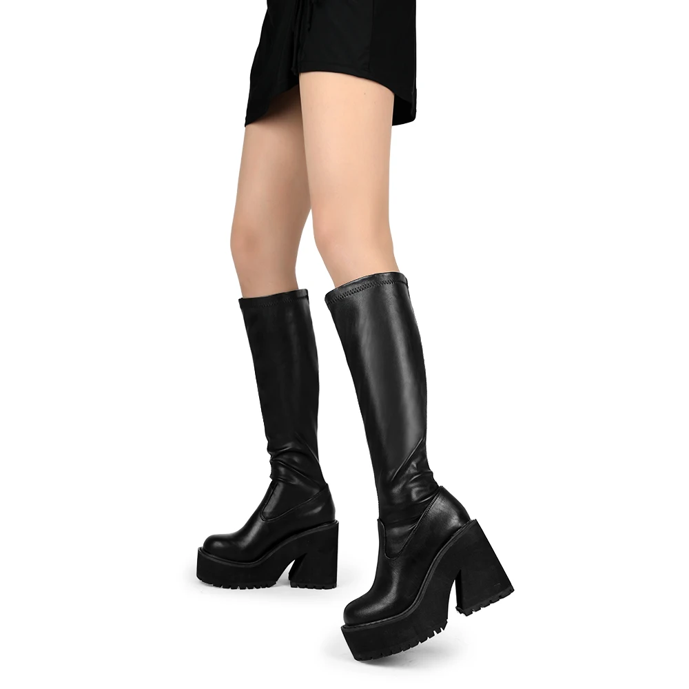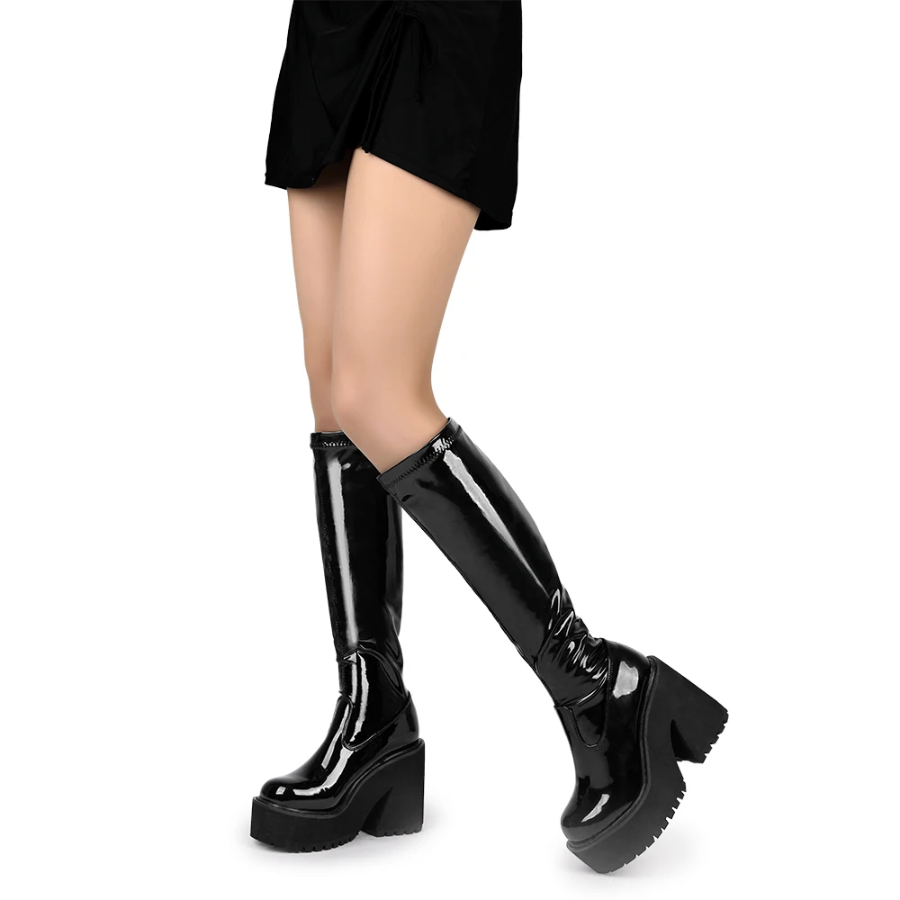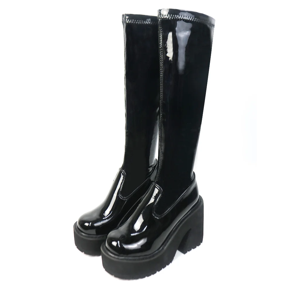 brand sexy ladies luxury black patent long women's motorcycle boots