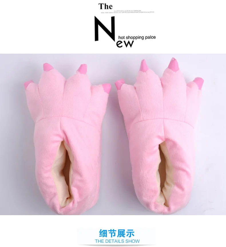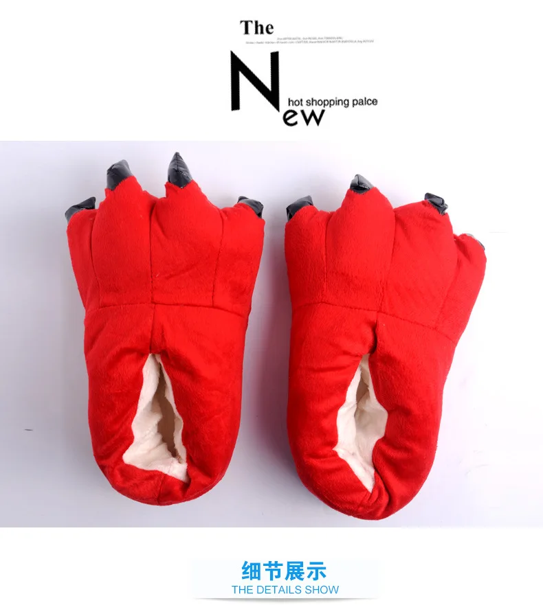 New Winter Soft Kigurumi Slippers Women Men funny Shoes Animal Christmas Dinosaur Claw Plush Home Shoes