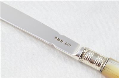 The Silver Blade is hallmarked with the with the letter P for 1808 along with the Lion Passant, Crown and the Makers mark which is MB - the makers mark for the sought after Moses Brent. The item is in fantastic condition for its age as the photos reflect, hallmarks are slightly rubbed. The Paper Knife is 18.5 cm in length and weighs 35 grammes.