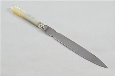 On offer is a Genuine Sheffield Assayed Silver Ferruled Letter Opener bearing a Mother of Pearl Handle. The item has a steel blade with a brushed finish. Each Letter Opener is meticulously restored and silver finished to perfection.