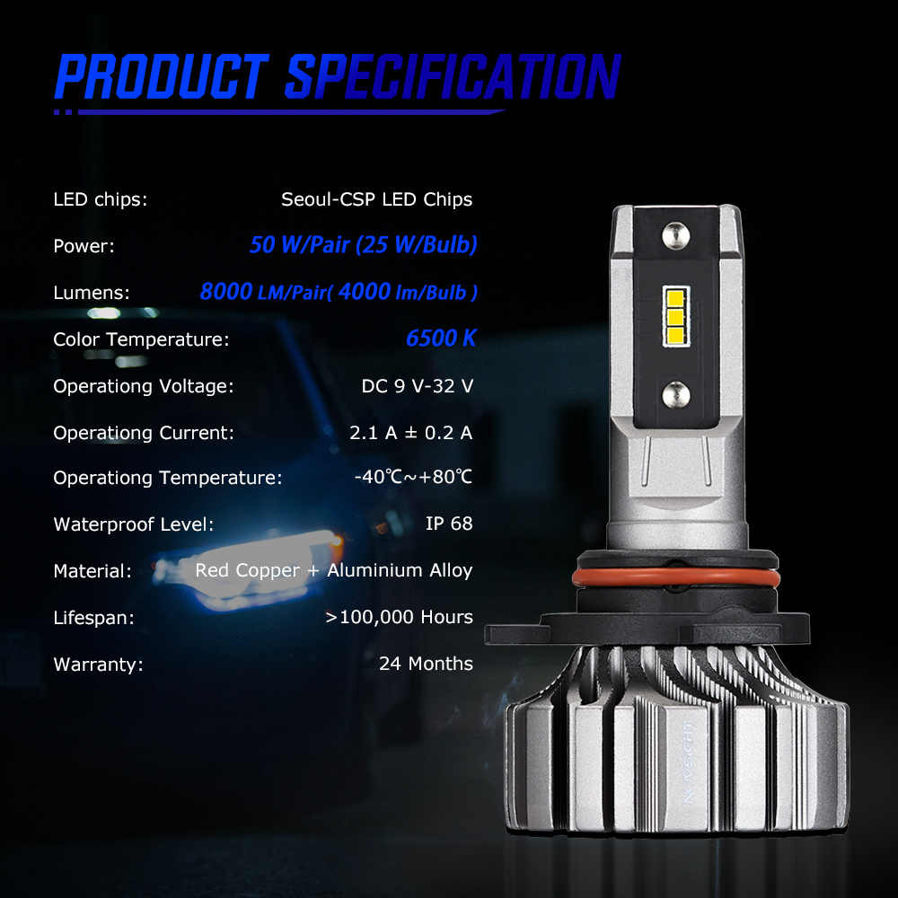Lumen: 8000LM/Pair(4000LM/Bulb)