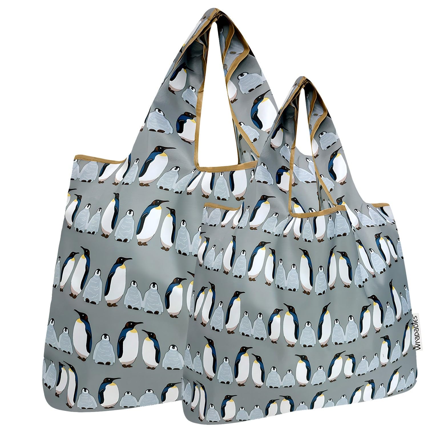 Large & Small Foldable Tote Nylon Reusable Grocery Bags, Set of 2, Penguins