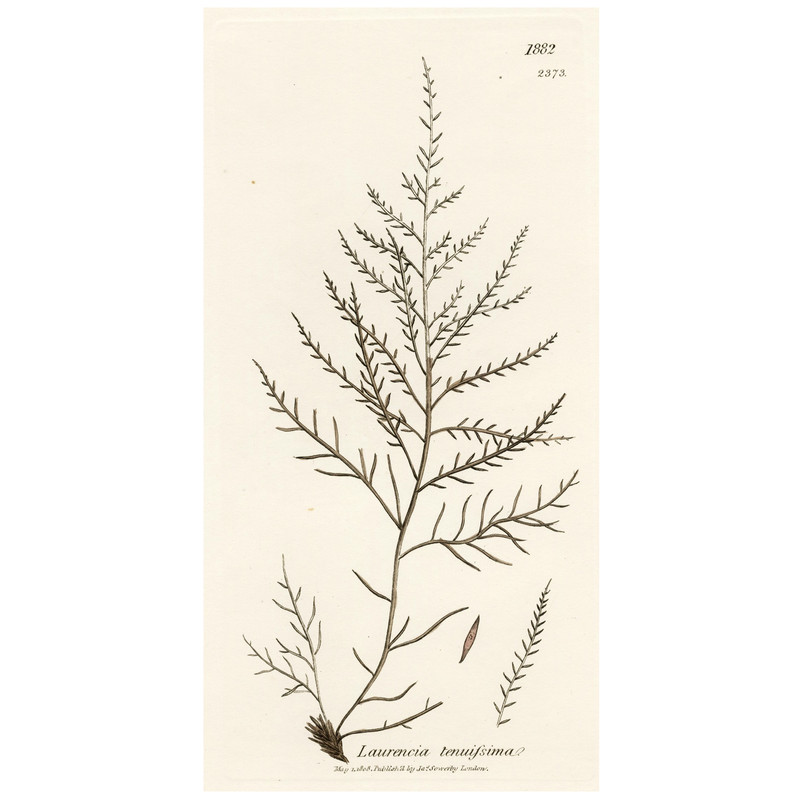Good condition, age-toning to the paper as one typically finds with these, minor antiquarian character. Hand-coloring remains bright & vivid. Note, some of these have a note in contemporary sepia ink in a graceful, cursive hand, regarding what looks like the colloquial names of these seaweeds... very nicely authentic & unique history) Please peruse the photos.