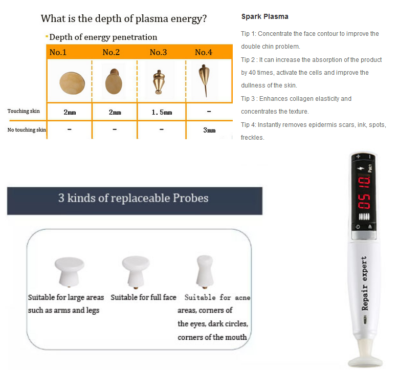 1.Unlike lasers and light sources, plasma has no specific chromophore and can be used on all parts of the body.