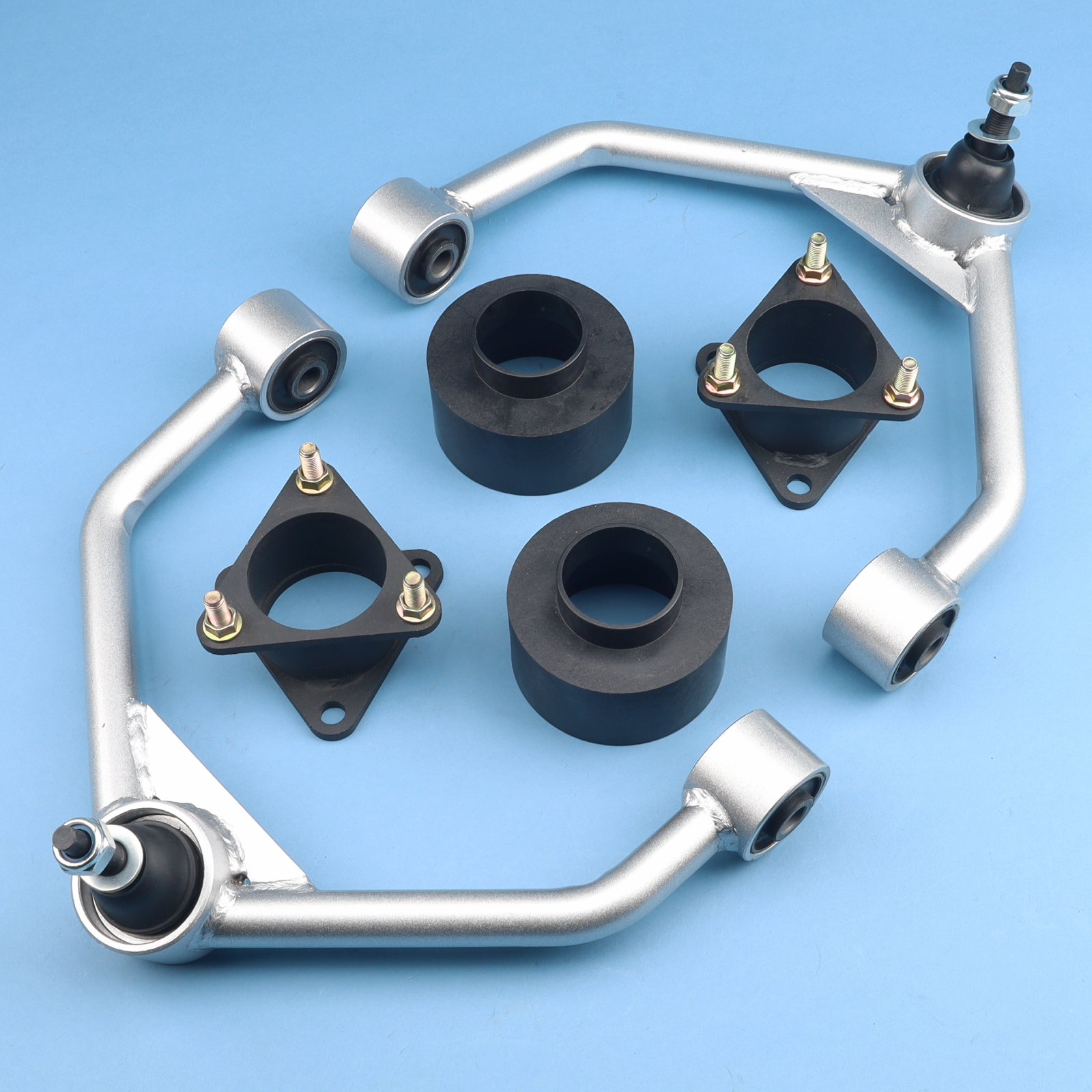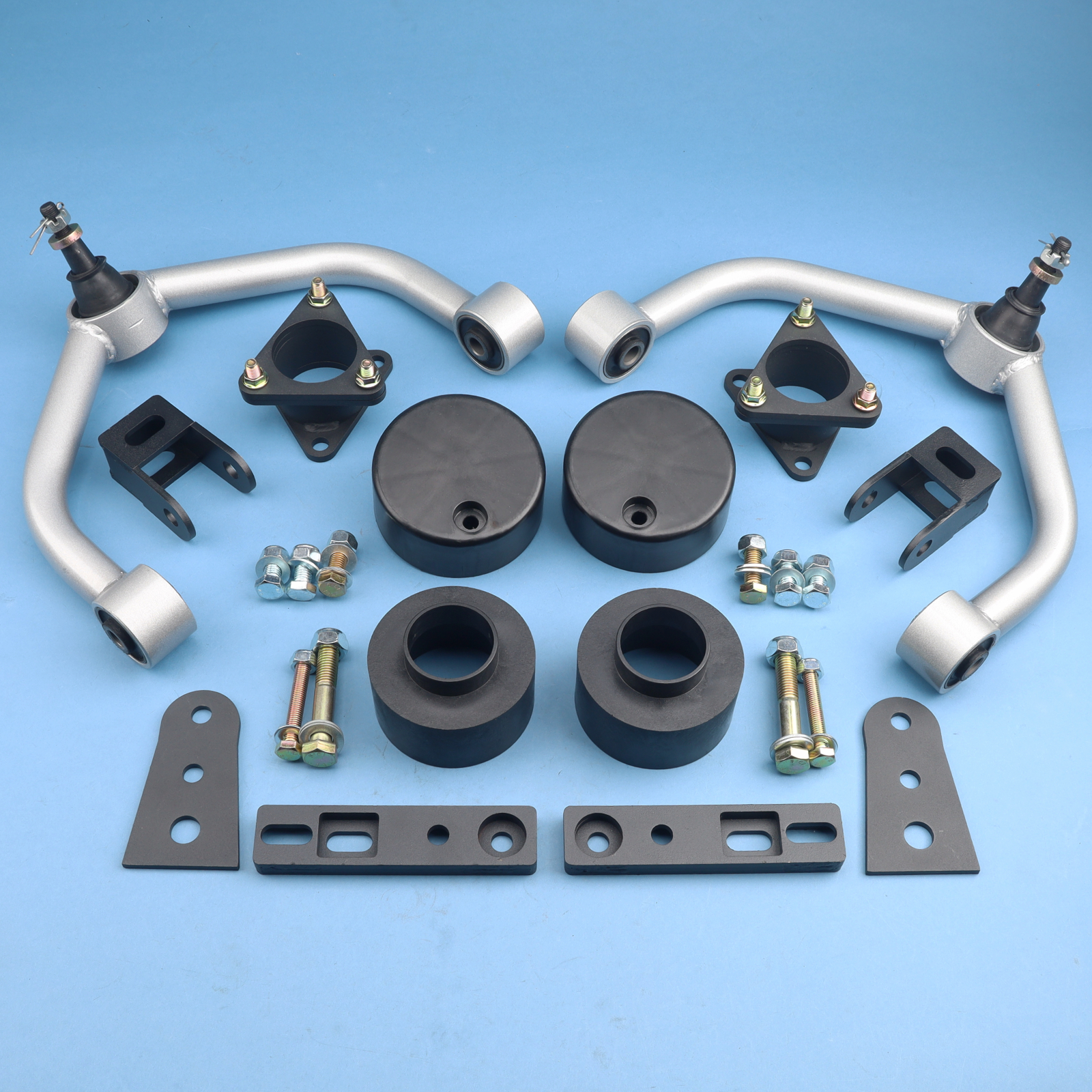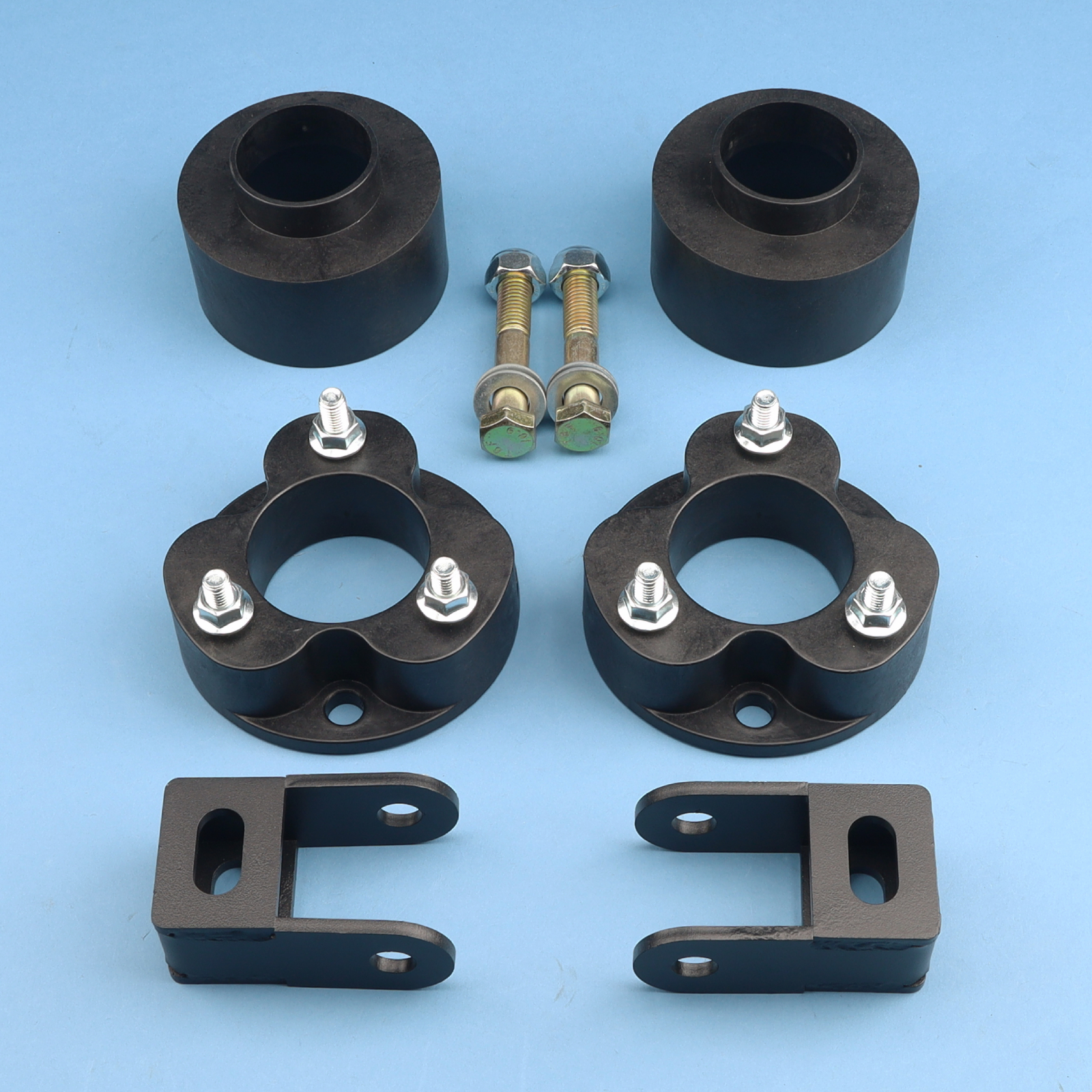 This set of front strut mount extensions immediately offers increased ground clearance without the hassle of a long and drawn out installation process. Featuring 100% bolt-on installation and a unique design that allows fitment without the need to disassemble the strut. The leveling kit systems will not affect your factory OEM ride quality or comfort level.