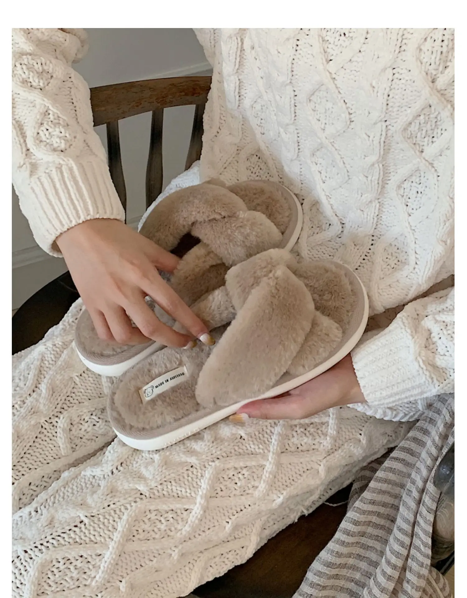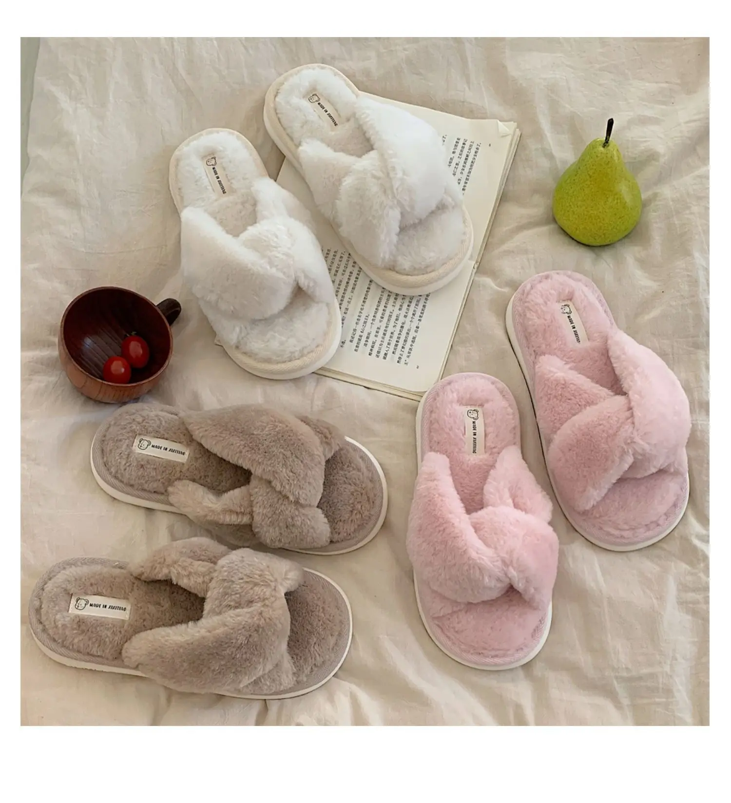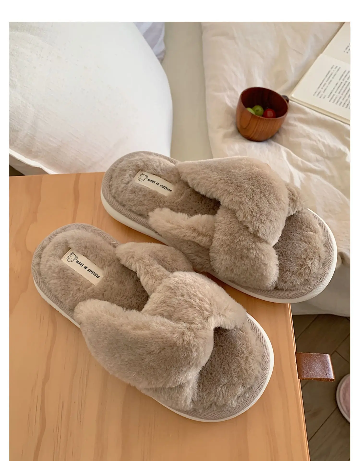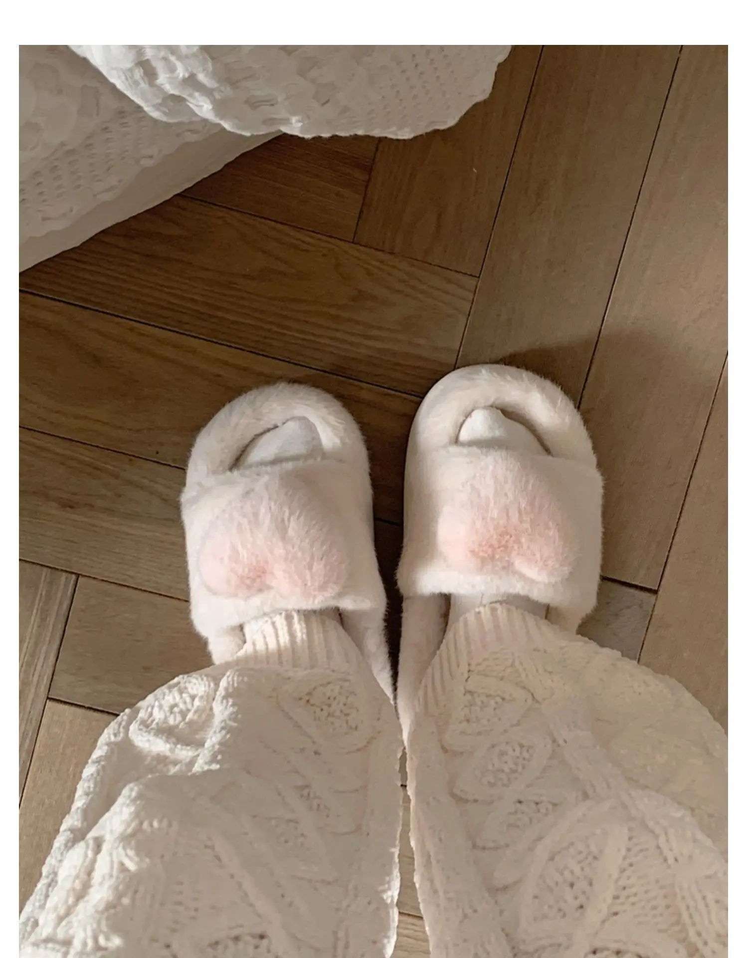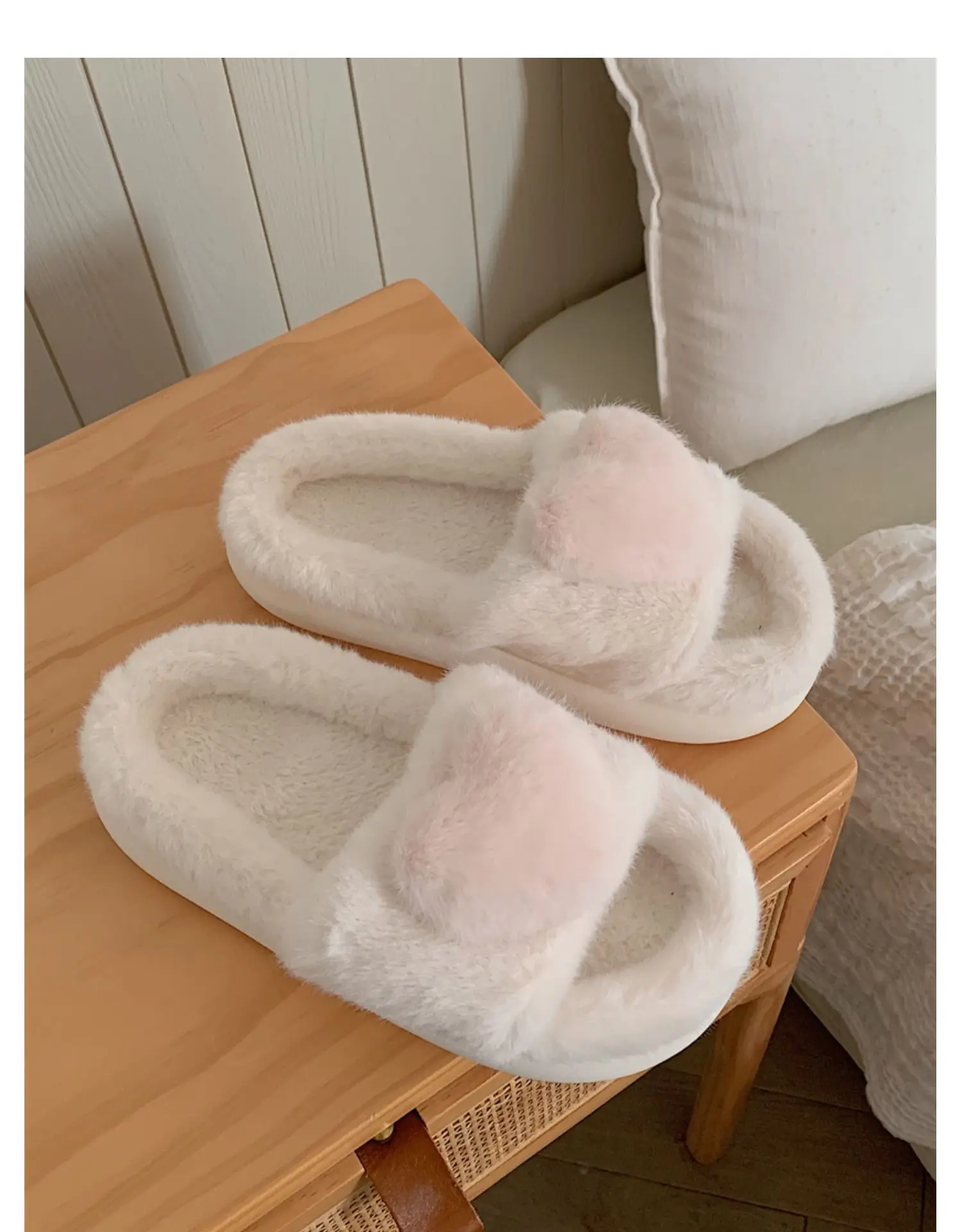 Women Home Plush Slippers Indoor Soft Cotton Slippers Fashion Home Bedroom Warm Love Plush Slippers Fashion Fluffy Fur Slippers