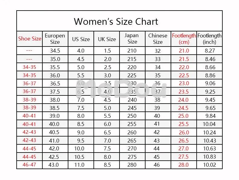 For example,my foot length is 245mm,I will choose size 38-39,but if my foot is wide or fat,I will add 5mm to my foot length(250mm),and choose size 40-41.