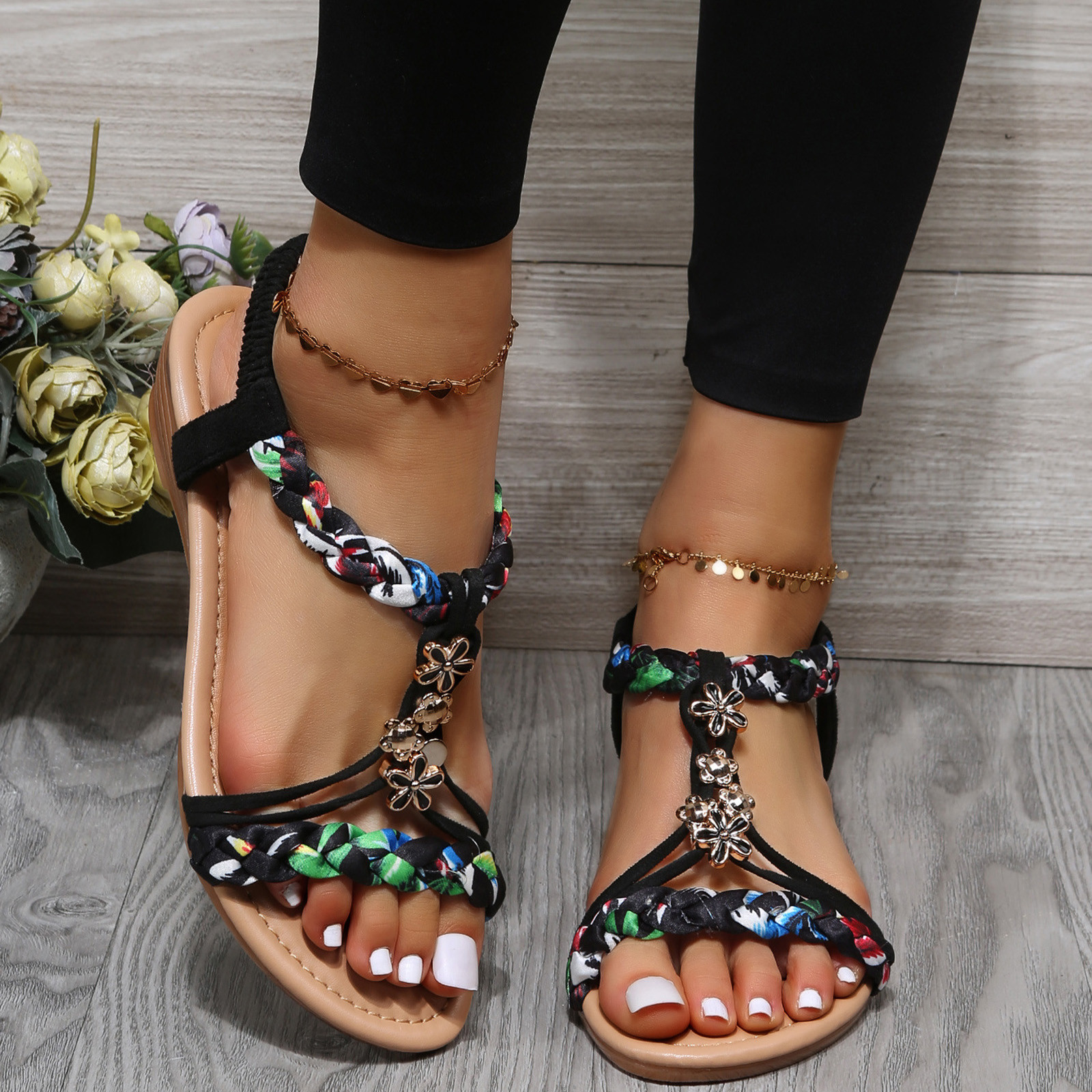 Open-toe flat colorblock beach sandals for a variety of occasions, sandals look stylish.
