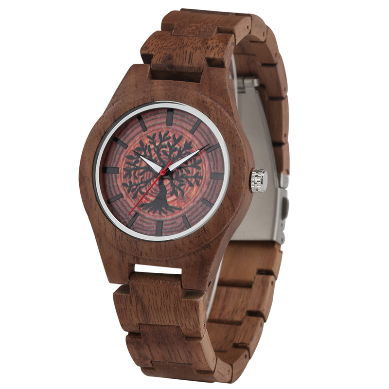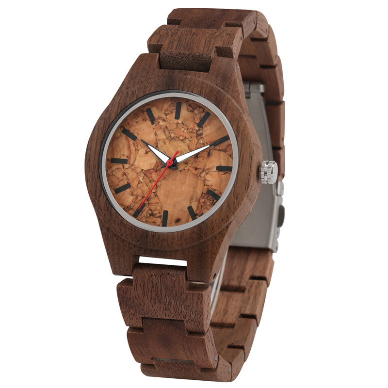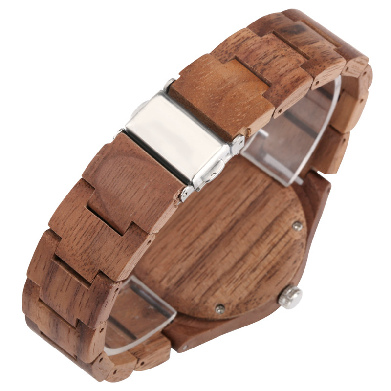 The watch is made from natural wood and is wrapped by hand, so it may have some natural harsh lines and a few blemishes.