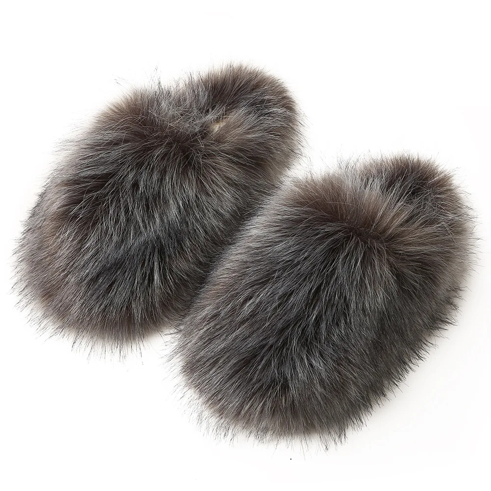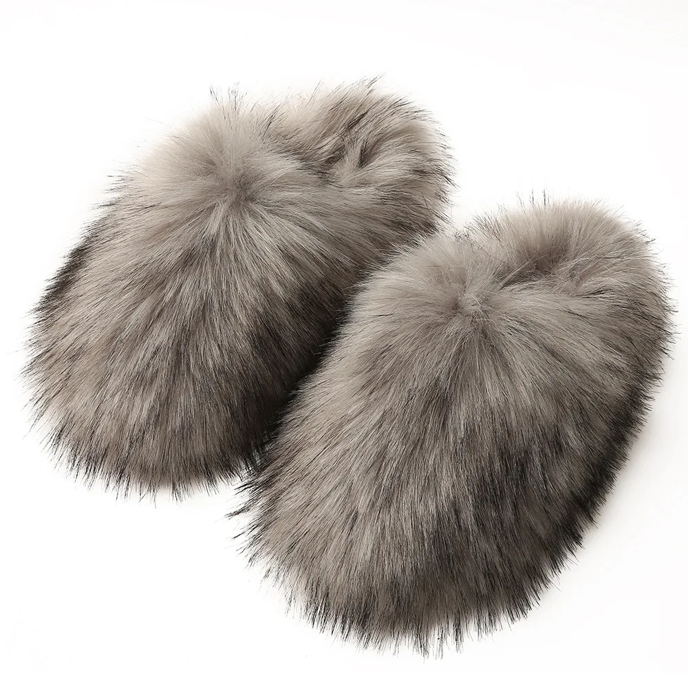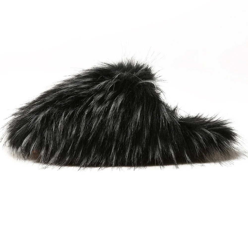 Luxury Faux Fur Slippers Designer Furry Shoes Women Raccoon Fox Fur Slides Flat Plush Flip Flop Winter Warm Fluffy Slipper Woman