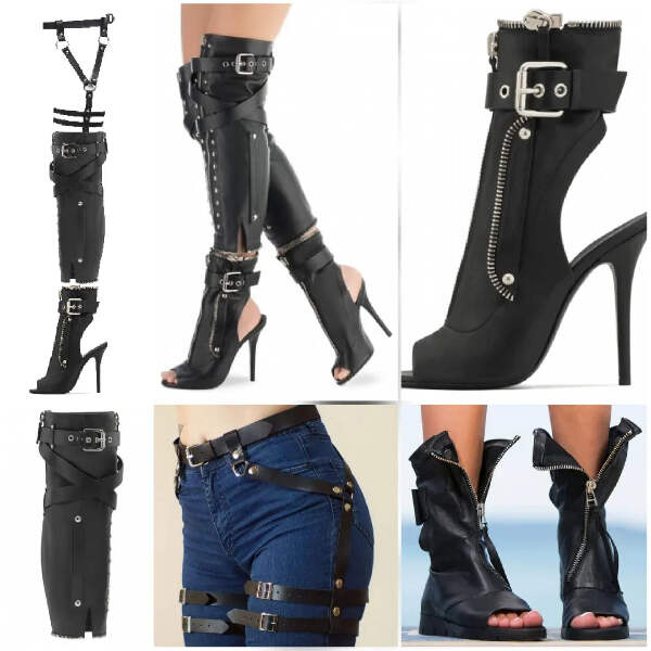 ankle sandals, metallic faux leather leggings, thigh sandals, over the knee sandals, Belteds
