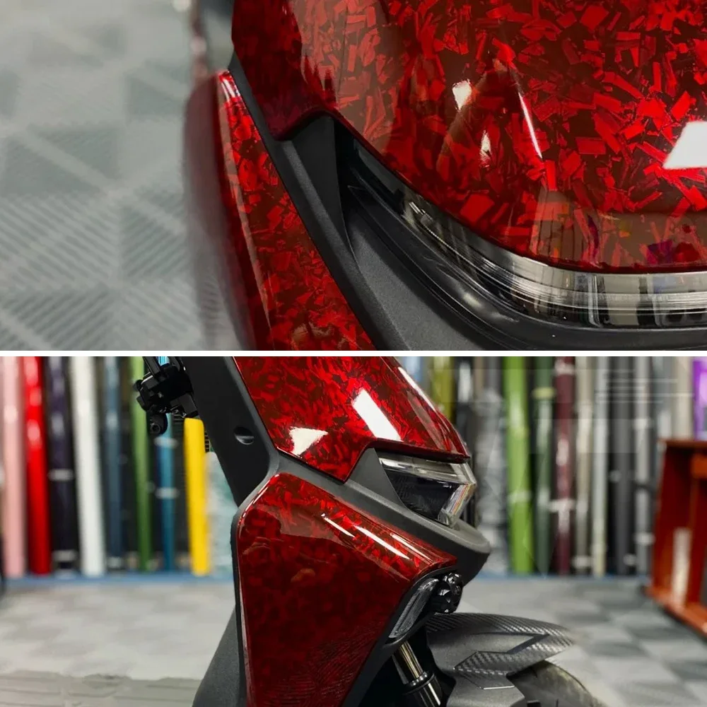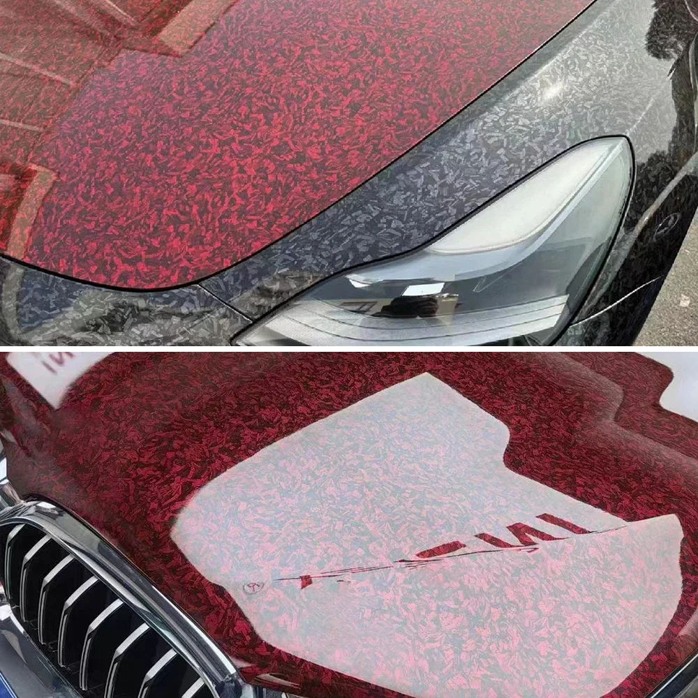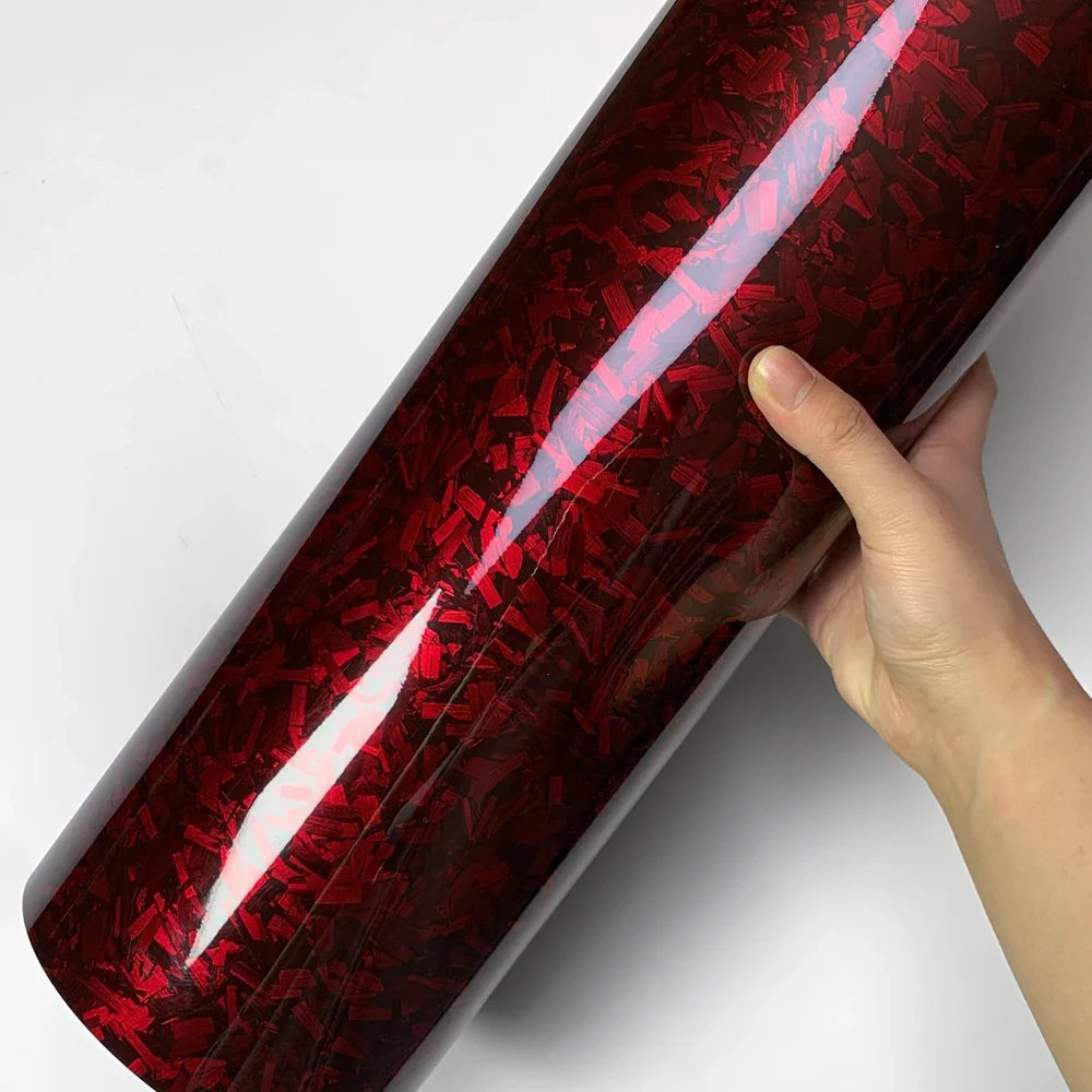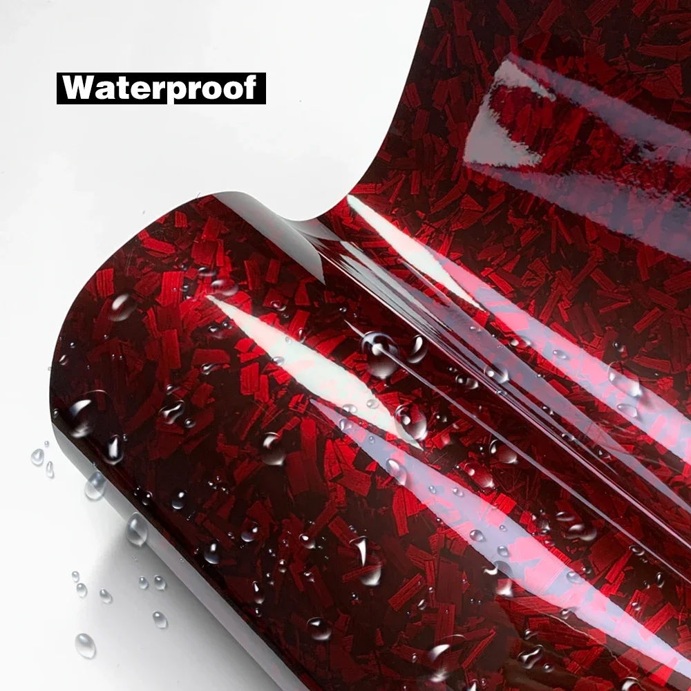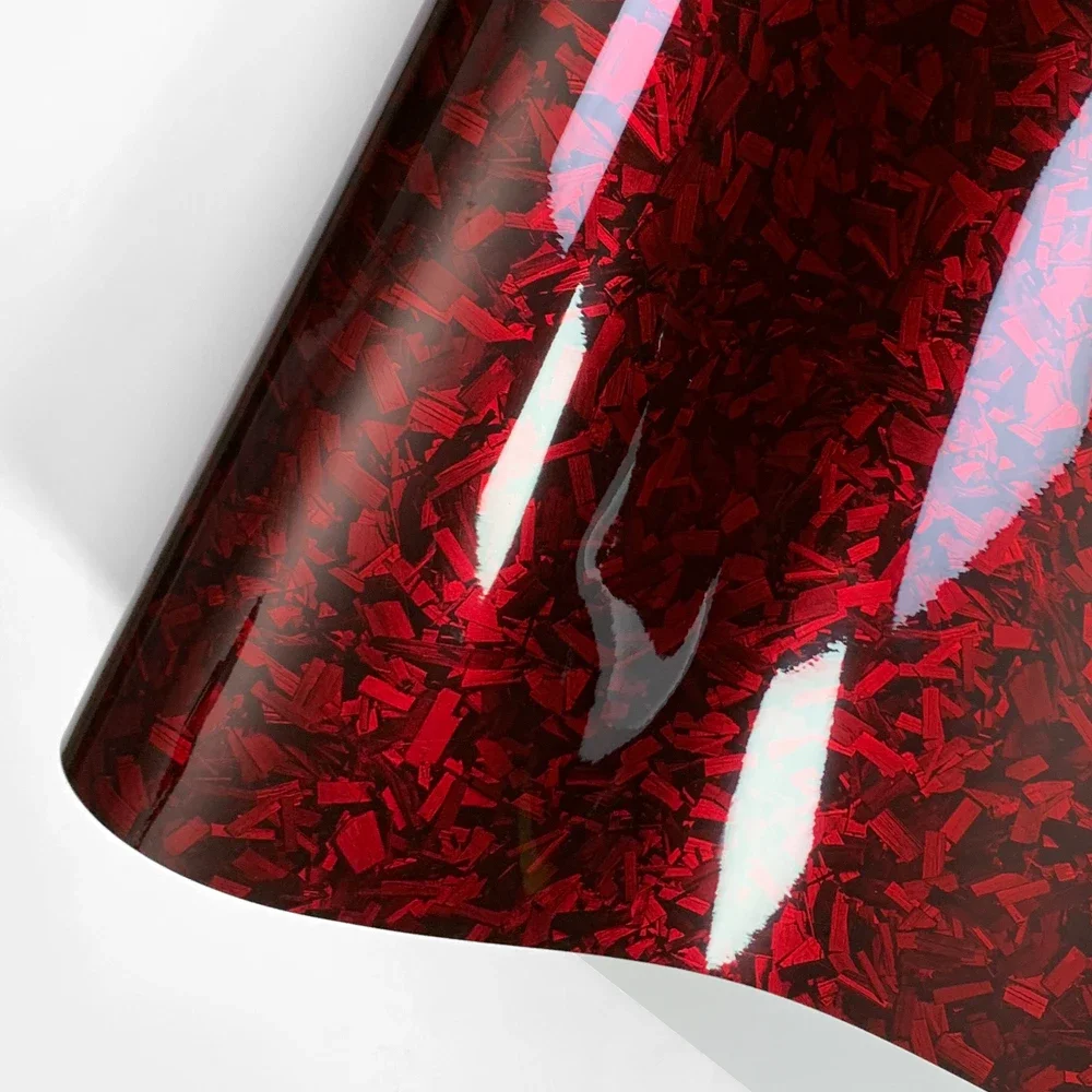 Car Body Film Glossy Carbon Fiber Film Forged Carbon Fiber Vinyl Wrap Air-release Red Self Adhesive Stickers Car Accessories