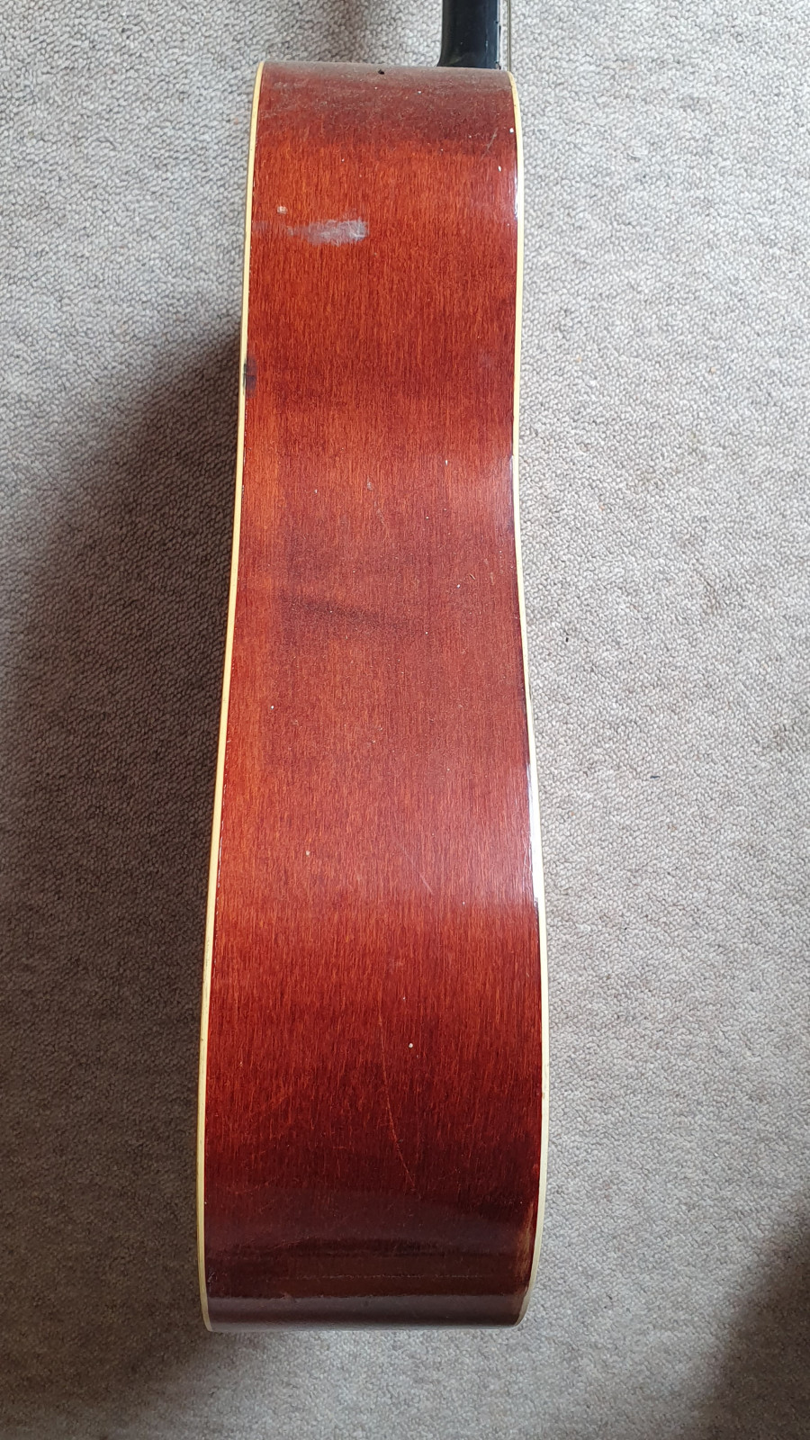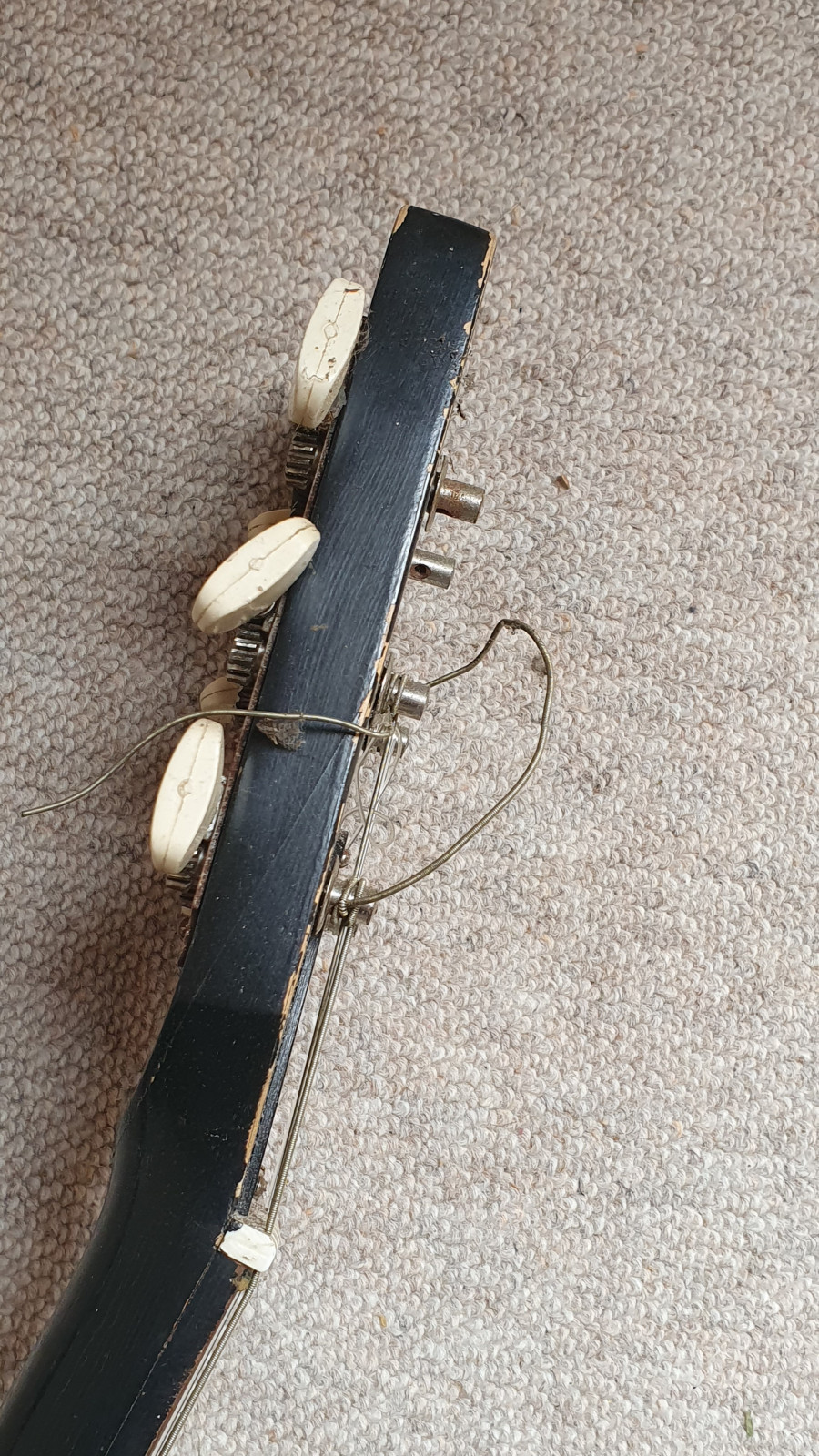 Interesting, old guitar. There s a damage where the neck meets the body and the instrument needs a good cleaning as it is dusty. The label inside reads reads "Made in Czechoslovakia Cremona Luby MC 1,490 Typ 4470" (No year to be found) I guess, it was made in the 1970s. Please make sure, that you see all the photos! The neck is nearly straight. The overall length is approx. 103,5 cm/ 40 3/4inches, the body has approx. 50,5cm/ 20 inches. The nut has 4cm. The guitar needs to be repaired, serviced and cleaned. Shipping to USA or Canada is 75$, international bidders welcome, I ship worldwide! Please also view my other auctions with instruments. Shipping more than 1 instrument would save in shipping.