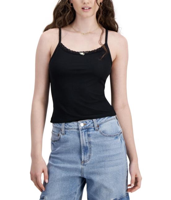 Lace trim at front and back necklines