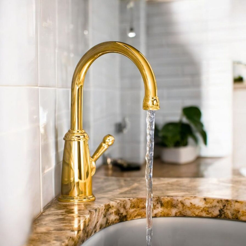 Add a touch of class and convenience to your kitchen with the Kohler Wellspring cold water dispenser. This beautiful faucet, in a warm Vibrant Brushed Moderne Brass finish, gives you easy access to filtered water right at your sink. The tall, curved gooseneck spout makes filling pitchers and water bottles simple. Built from durable brass with a smooth lever handle for precise control, this elegant dispenser is the perfect, long-lasting upgrade for your kitchen or bar prep area, combining timeless style with everyday practicality.