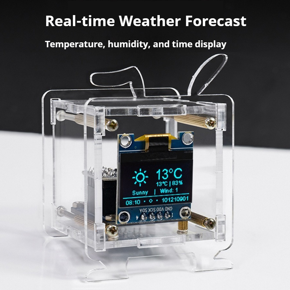 ESP8266 Mini Weather Forecast Clock Diy Kit 0.96 Inch Oled Display Support 2.4G Wifi Networking with Case Welding Practice Kit