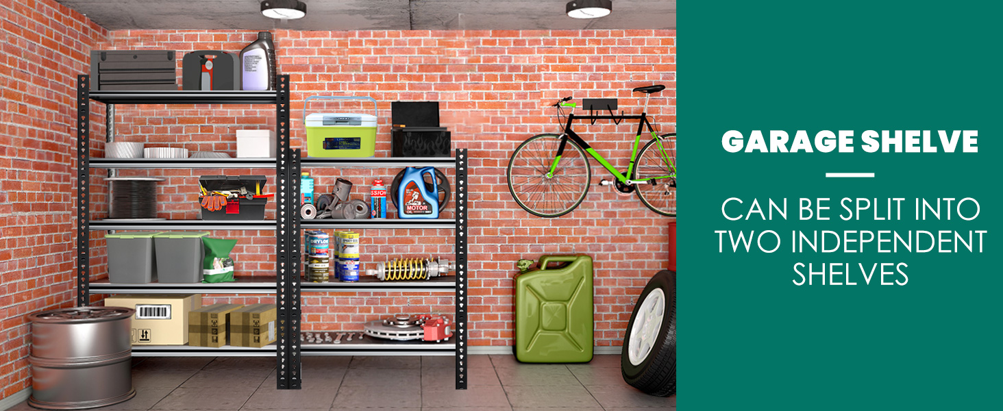 【Adjustable and Detachable Garage Storage Shelves】Each shelf unit consists of two layers, upper and lower, and this is detachable. When the shelving units for garage are separated, they can become two independent small shelves or workbenches. Each layer of the crossbeam in this utility shelf can be adjusted up and down by 1.6 inches. Therefore, you can easily adjust the height of each layer to accommodate the storage of goods of different sizes.