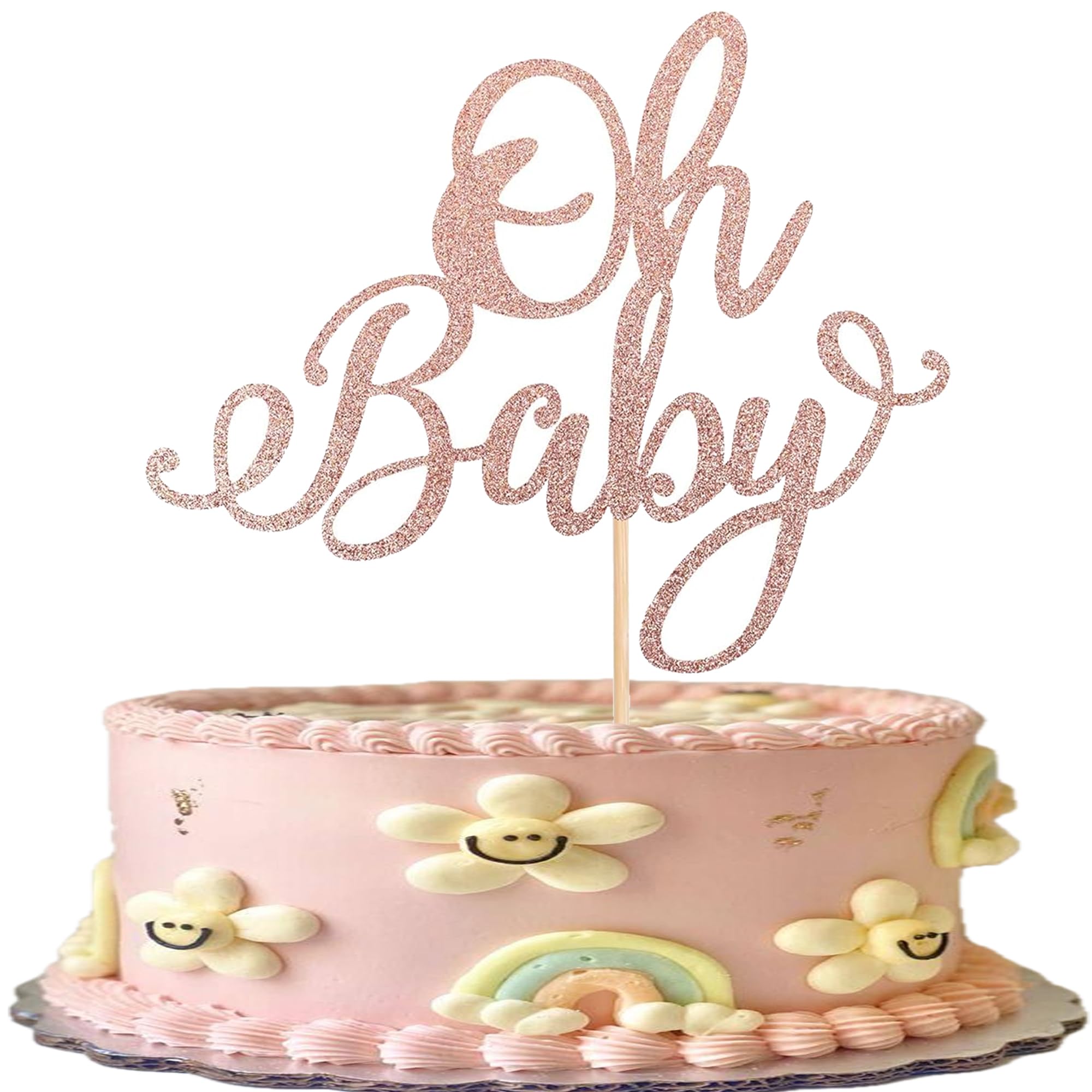 1 Pack Oh Baby Cake Topper Rose Gold Glitter Baby Shower Cake Pick Decorations for New Baby Gender Reveal Kids Birthday Party Supplies