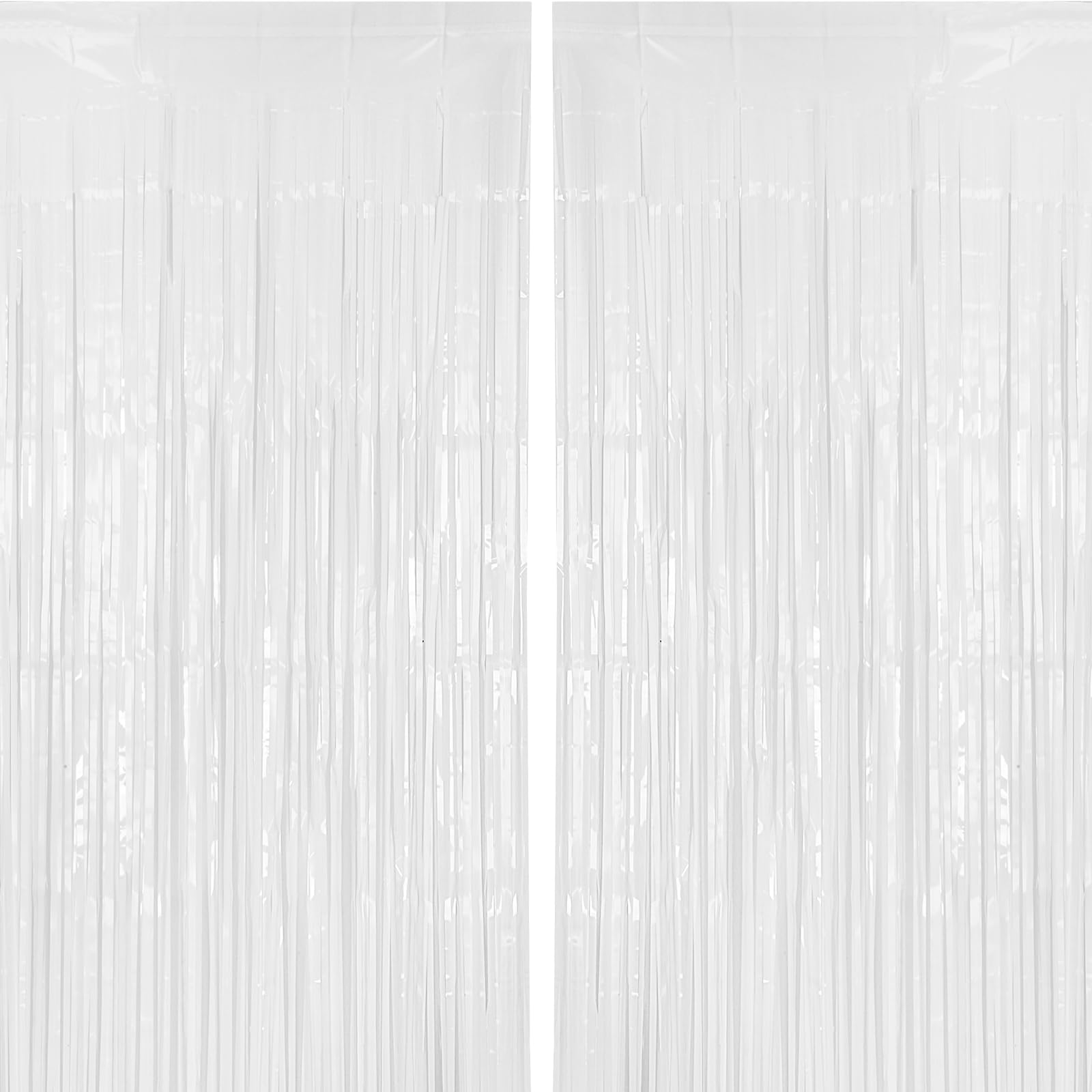- 【Classic White Streamer Backdrop】You'll receive 2 packs high-quality white Foil Fringe Backdrop Curtains, each Metallic Tinsel Curtain is 3.2ft(wide)×8.2ft(drop), enough length for decorating your party, can be freely cut to suitable size according to needs. With a touch of your creativity, use these Shimmer Streamer Foil Curtains, add a touch of glamour to your party decorations, surprise your family, friends, neighbors, and co-workers, quickly transform your home into a glittering party place.