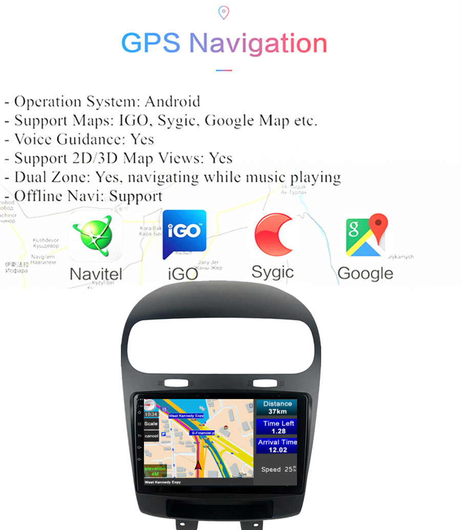 GPS | - Operation System: Android 11 - Support Maps: IGO, Sygic, Google Map etc. - Voice Guidance: Yes - Support 2D/3D Map Views: Yes - Dual Zone: Yes, navigating while music playing - Online Navi: Yes, support google maps online navigating |