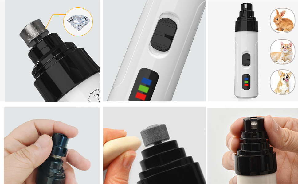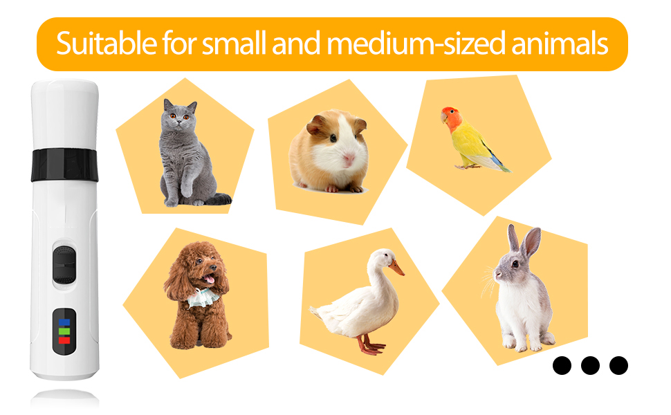 【Ergonomic compliance】The pet nail grinder for dogs features an ergonomic design that is easy to grip and use. Whether you are right-handed or left-handed, its lightweight and portable design ensures comfortable operation during grooming, making it easily accessible to all pet owners without causing harm to their pets.